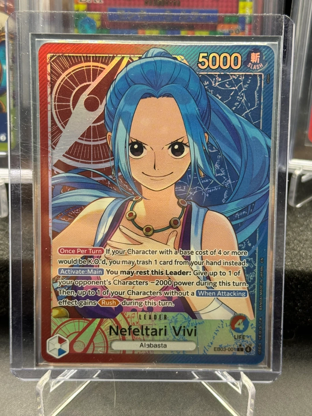 Buy & SellOne Piece Card Game Nefeltari Vivi Leader Card EB03-001One Piece Card Game Nefeltari Vivi Leader Card EB03-001TradeOne Piece Card Game Nefeltari Vivi leader card. Serial number EB03-001. This card is from the Alabasta set.WHERE TO MEETTIMS BRAMView MapSELLERverifiedSHANKSCentral Park953 reviews0 chats·0 favorites·4 viewsSEND CHAT TO SELLERHi SHANKS! I’m interested in your listing.Hi SHANKS! I’m interested in your listing.Get the Karrot app to chatSign In to chat
