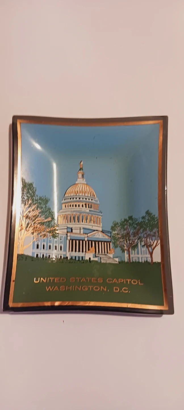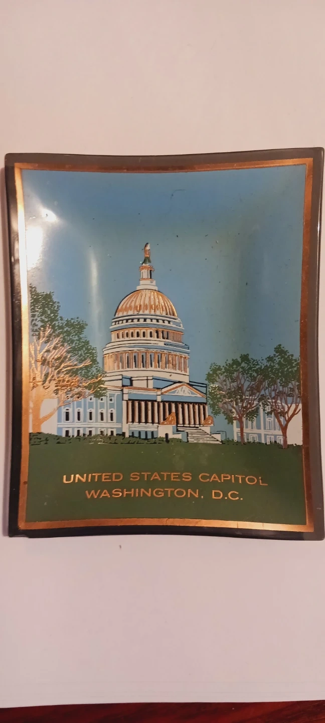 Glass dish featuring the United States Capitol building in Washington, D.C. A nice souvenir piece. Perfect for holding small items, jewelry, rings. 5"×4". Excellent condition. ALL MY PRICES ARE NEGOTIABLE !!