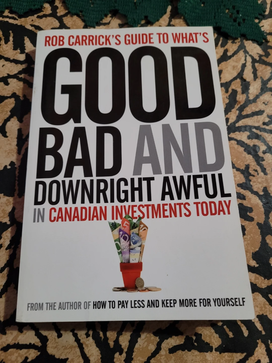 Selling Rob Carrick's Guide to What's Good, Bad and Downright Awful in Canadian Investments Today. It's a helpful reference for answers to specific concerns, arranged with clear and logical headings and handy lists of information. This book can be read cover to cover with enjoyment and kept as a useful reference to steer you in the right financial direction. Originally bought for $19.95 CAD.