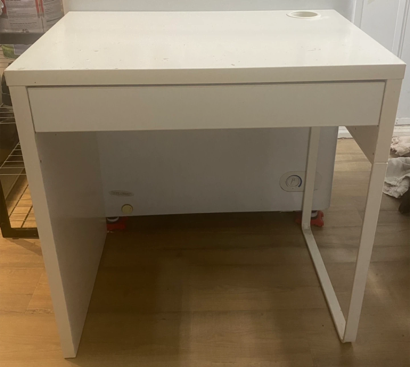 White Desk with Drawer and Cable Hole