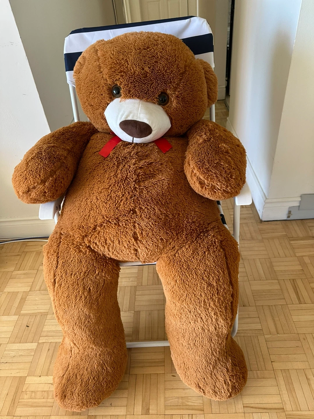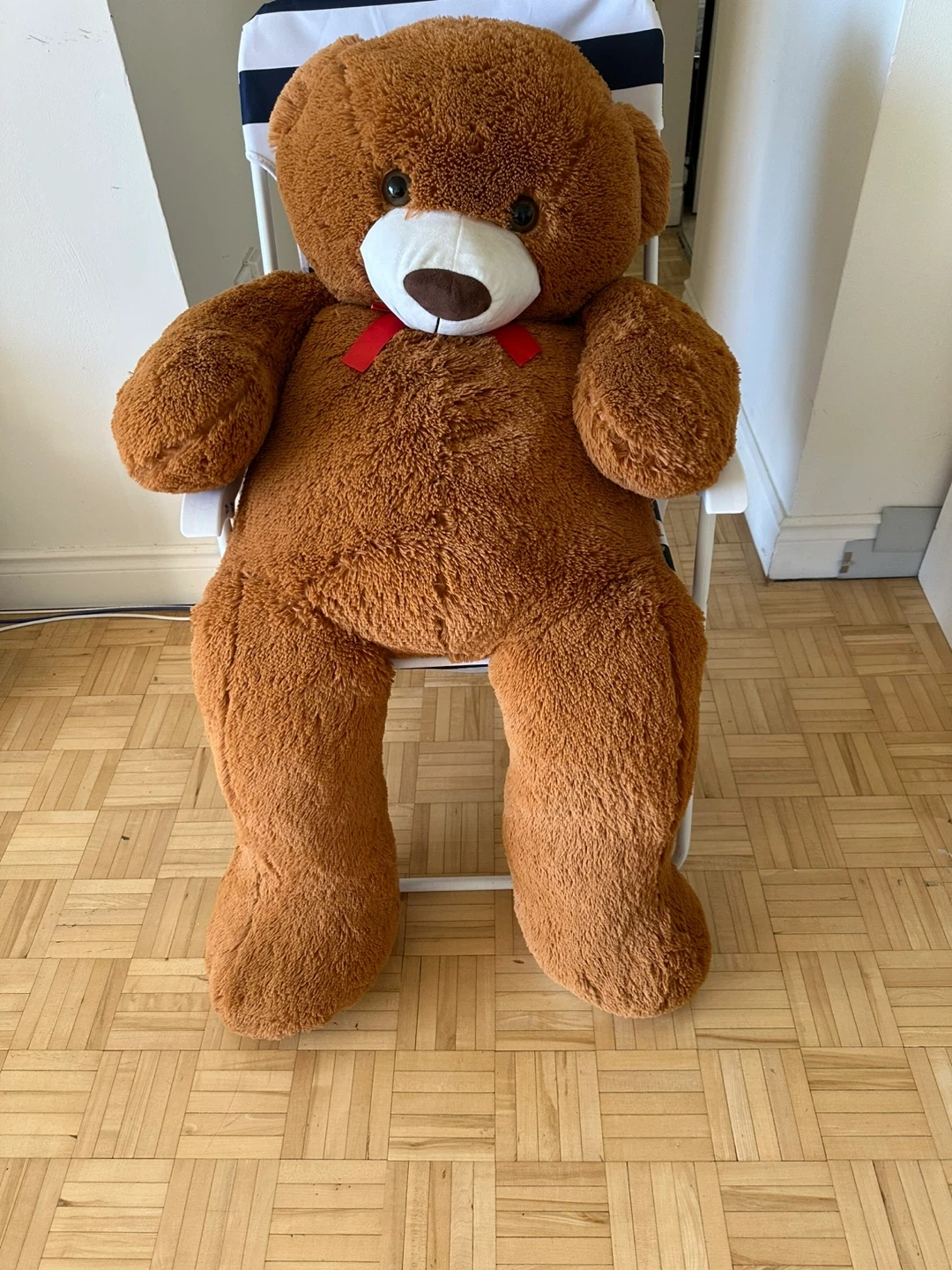 15A big, cuddly brown teddy bear looking for a new home! It's in great condition and ready for lots of hugs and snuggles
