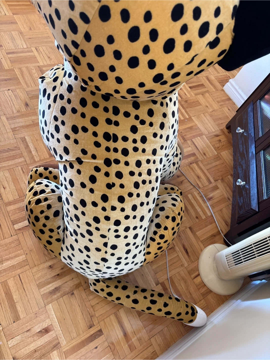 225Selling a large cheetah stuffed animal! It's in great condition and would be a fun addition to any room. It has a soft, plush feel and is perfect for cuddling or as a decorative piece
