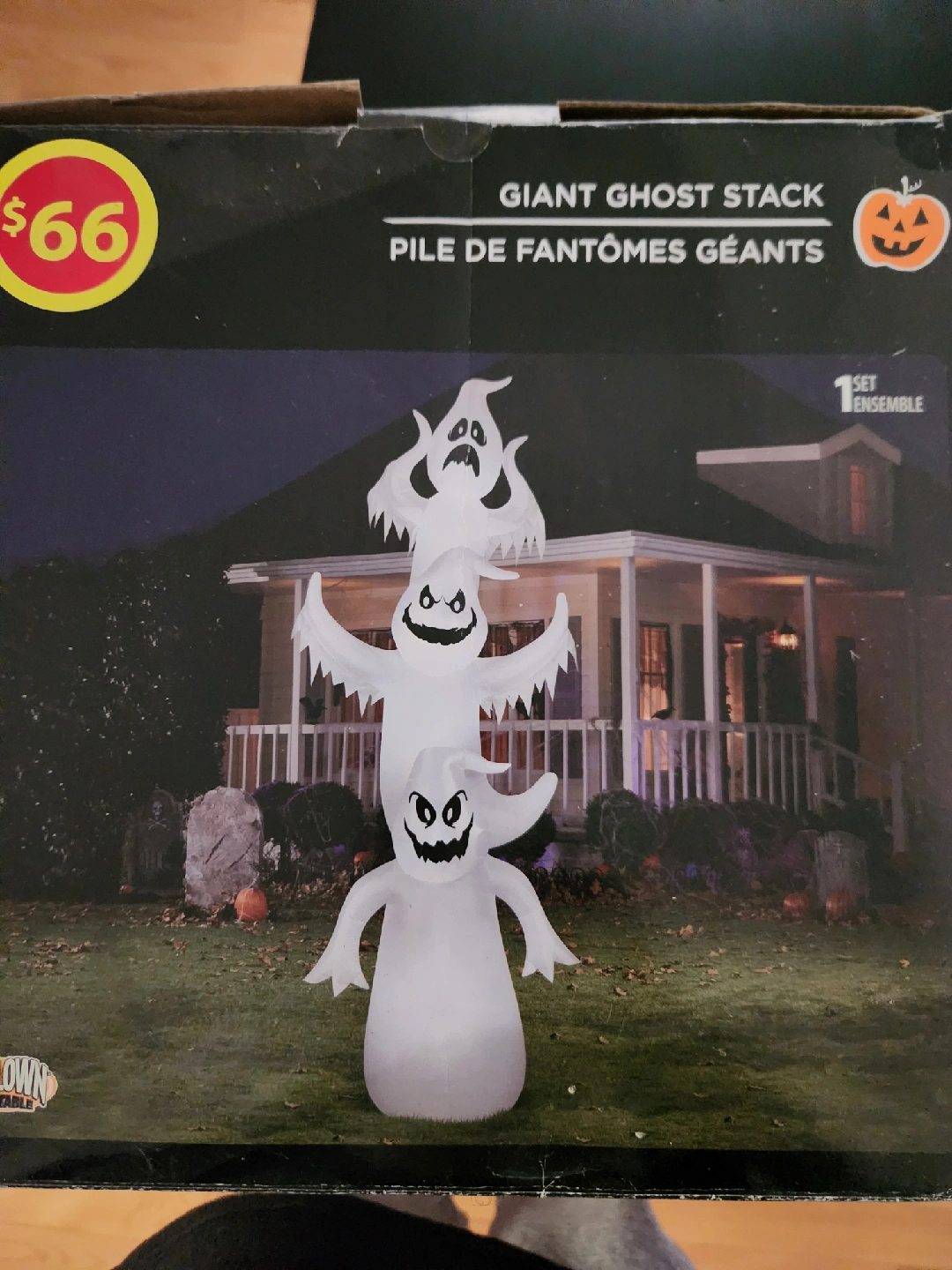 47Get ready for Halloween with this giant ghost stack inflatable decoration! It's perfect for adding a spooky touch to your yard. The box is included, so you'll have everything you need to set it up and make your home the spookiest on the block