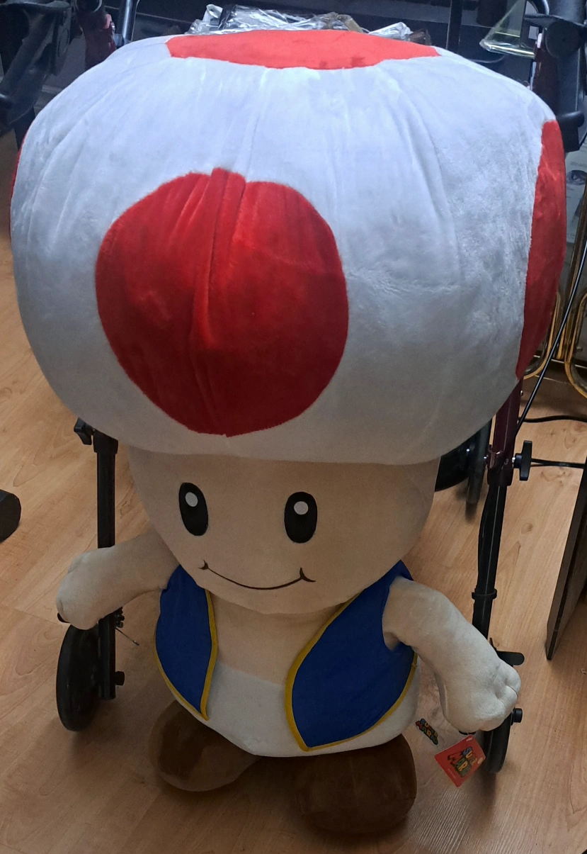 65Selling a cute giant Super Mario Toad plush! It's 2 foot 1 inch tall. It's a unique and fun item for any Mario fan or collector. It's in excellent condition and ready for a new home. ( Plush toy is looking great, no rips, stains, or damages. It has original tag still in place.)