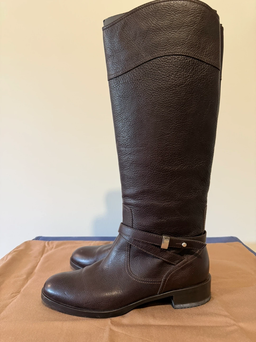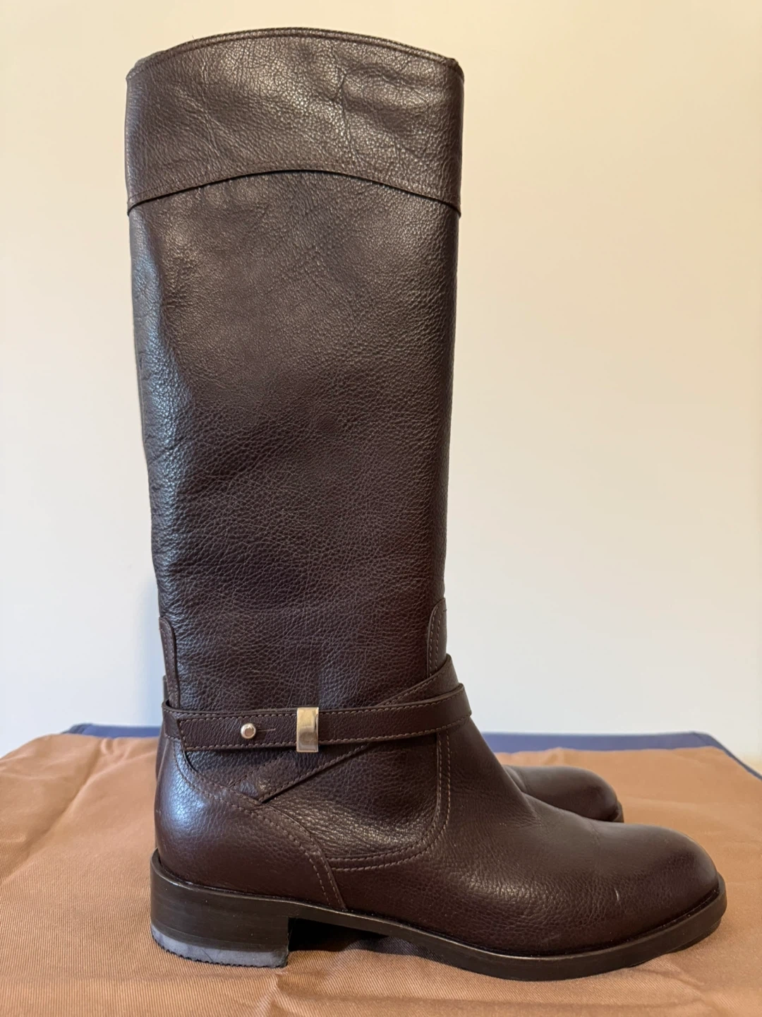 304Selling a pair of Gianvito Rossi riding boots in a beautiful dark brown leather! They are a perfect riding boot style. They have never been worn. The size is 37.5. Comes with individual dust bag for each boot. Never been worn. Condition is new. Made it Italy