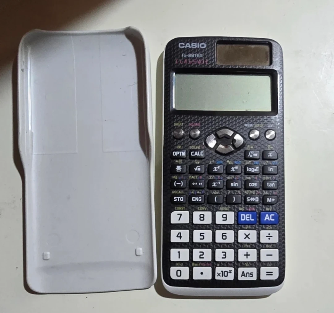 This is a Casio fx-991EX Classwiz scientific calculator. It comes with its protective slide-on cover. This calculator is suitable for students and professionals needing advanced functions.