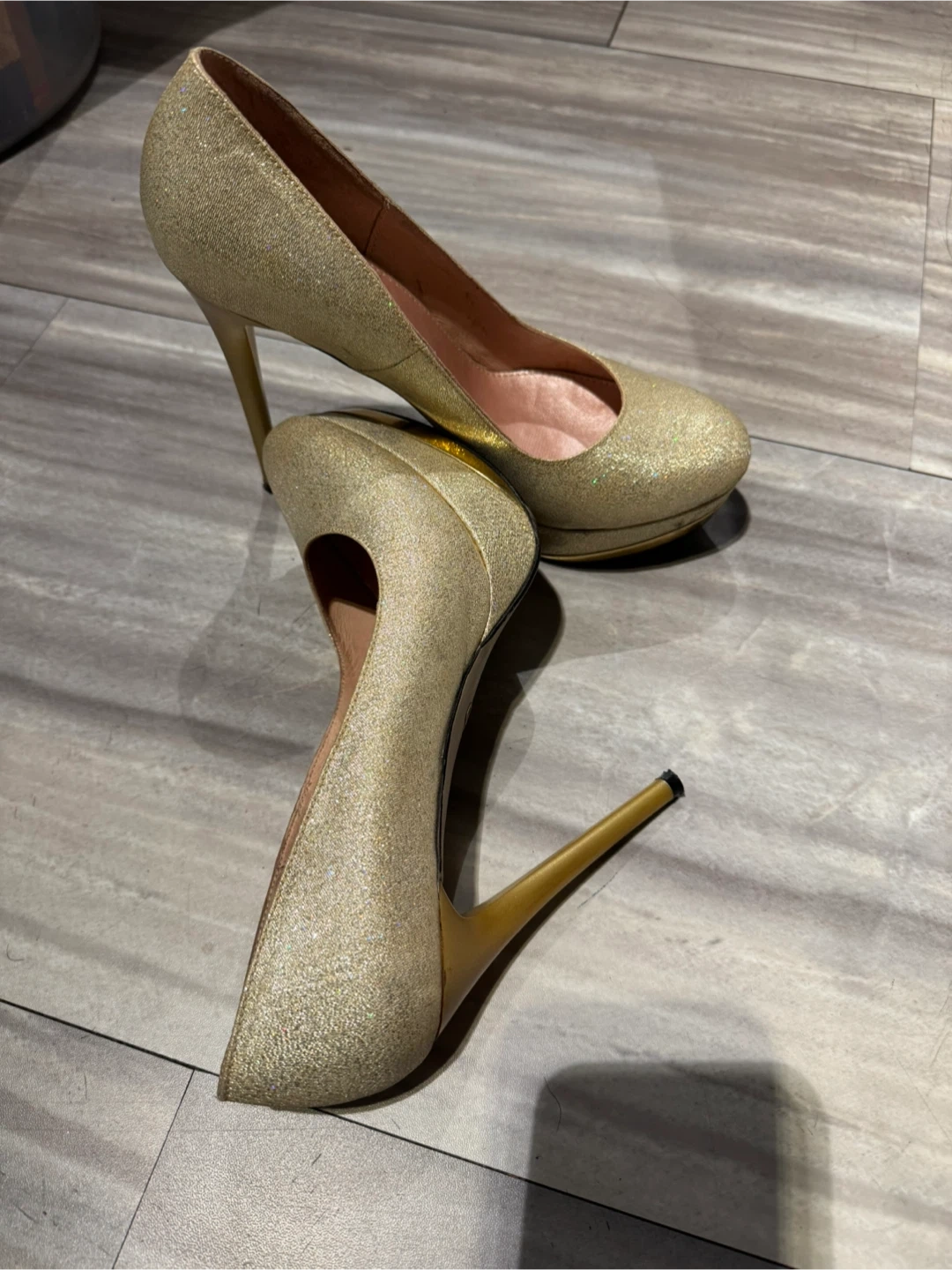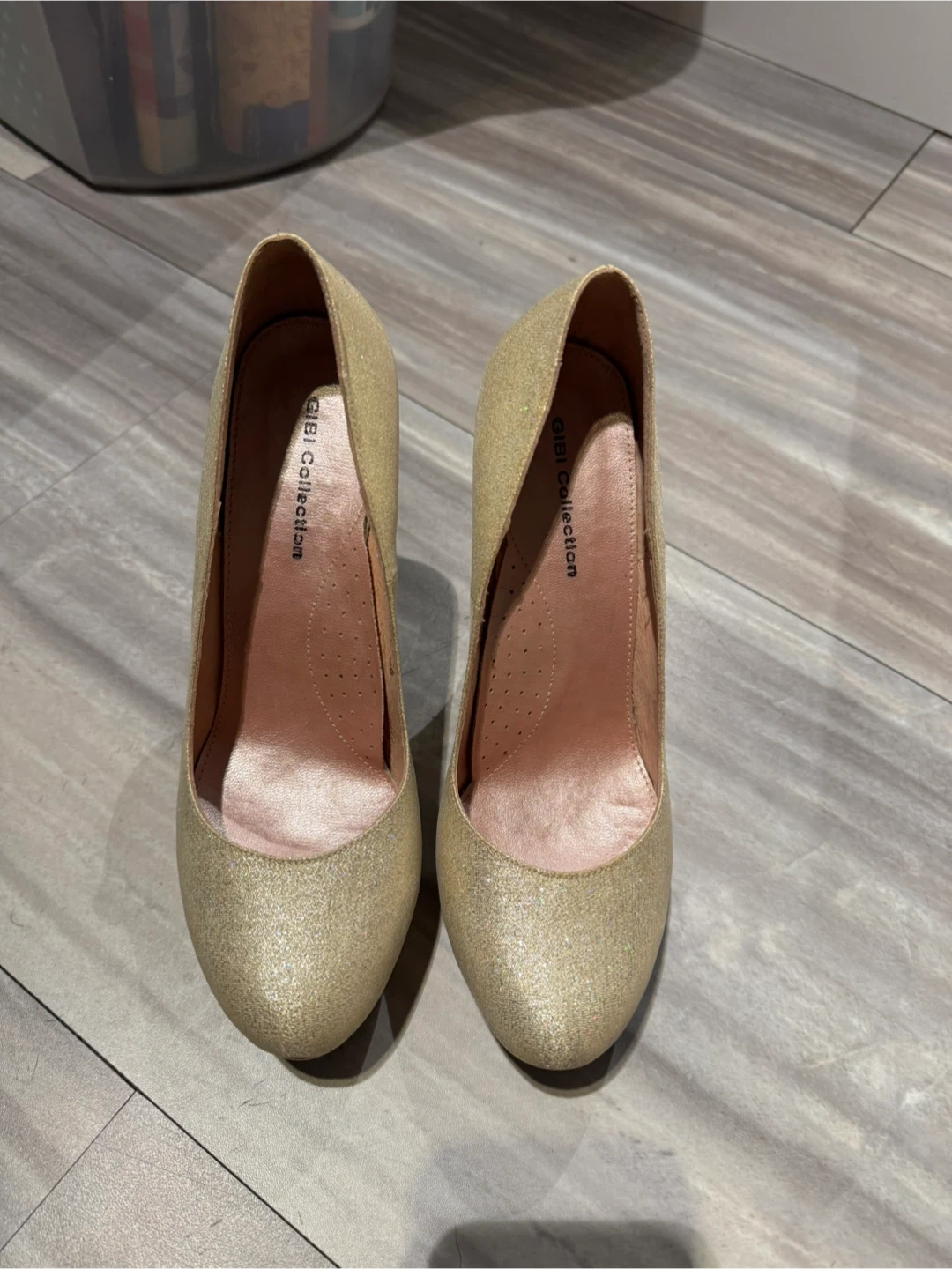 60These are a pair of gold glitter heels from Gibi Collection. They're perfect for a night out or a special occasion. They are in good condition and ready for a new home!