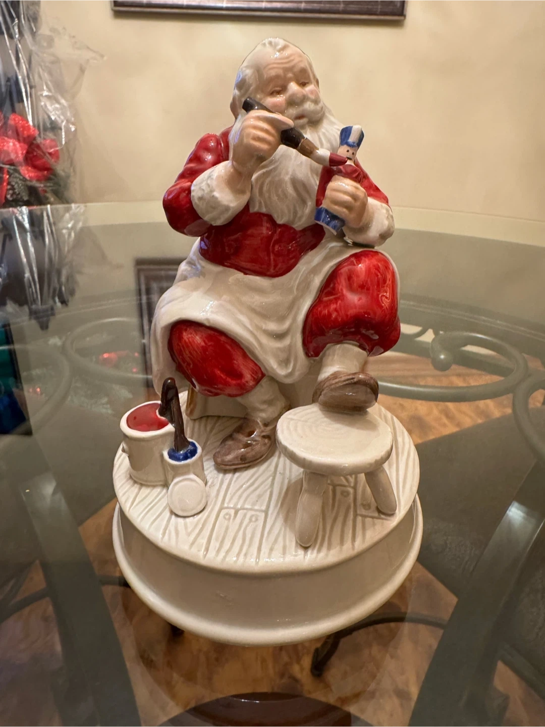 60Selling a charming Santa's Toy Shop musical figurine by Gibson Greeting Cards, Inc! This delightful piece features Santa painting a toy, adding a touch of festive cheer to any space