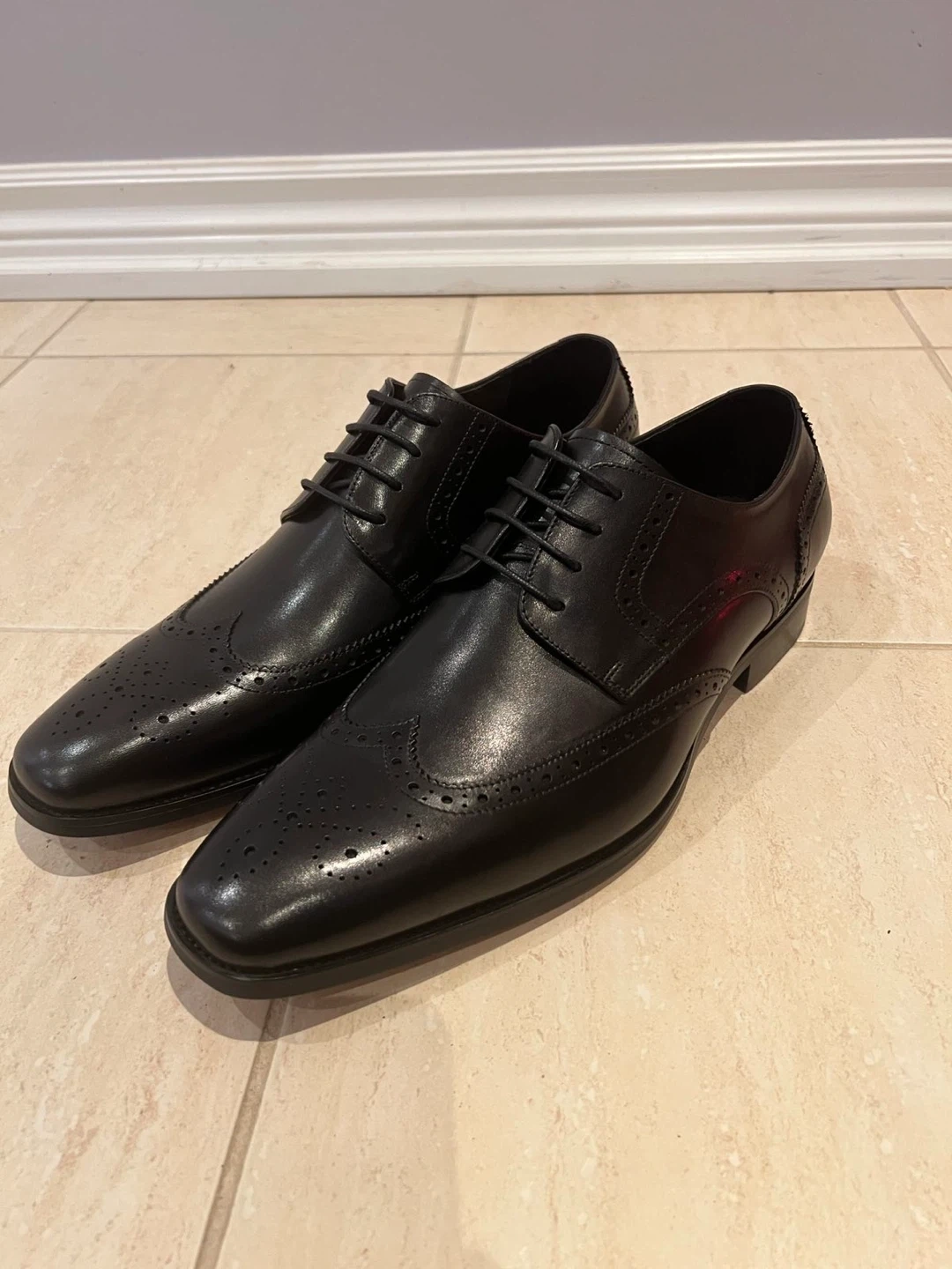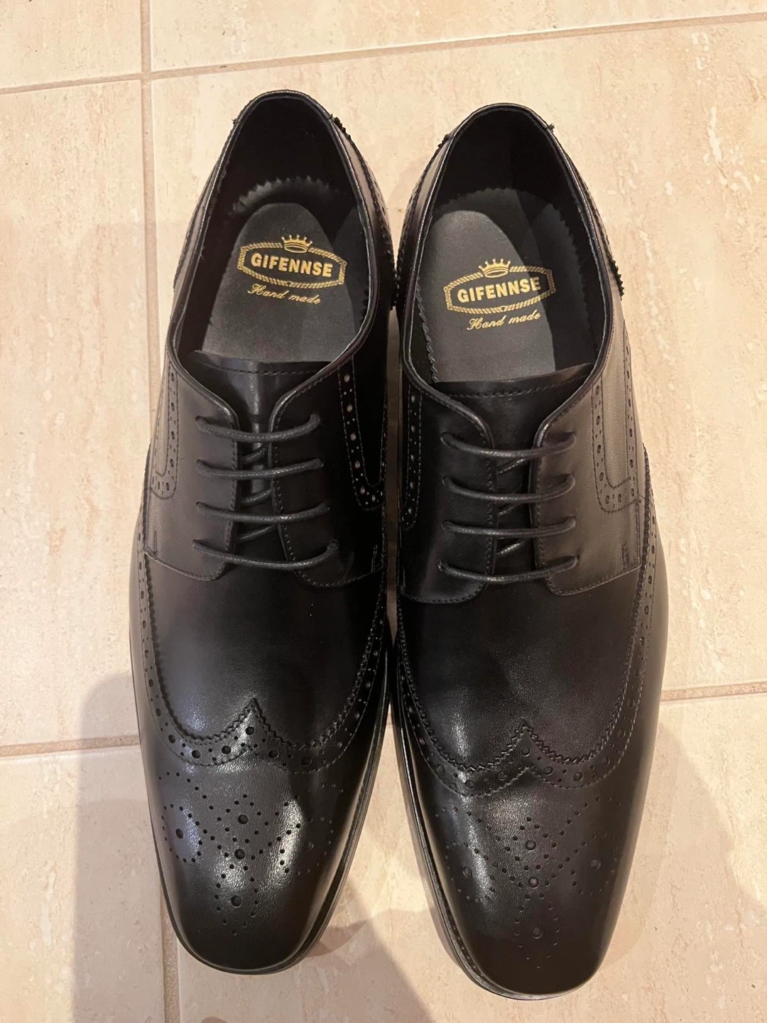 179Selling a pair of Gifennse dress shoes in black leather. These are wingtip style and appear to be in great condition. Perfect for a formal occasion or adding a touch of class to your everyday wear!