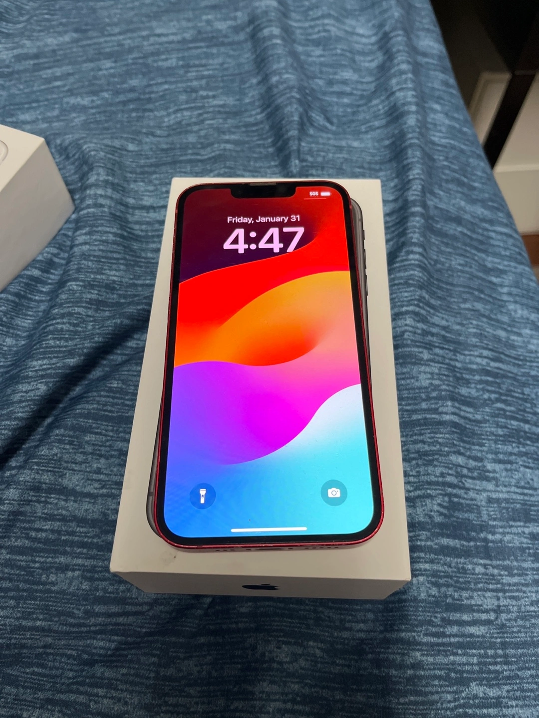 Red iPhone 13 with box, like new. Great phone, selling because Don’t really need it anymore. Phone is fully unlocked and opened to any carrier.