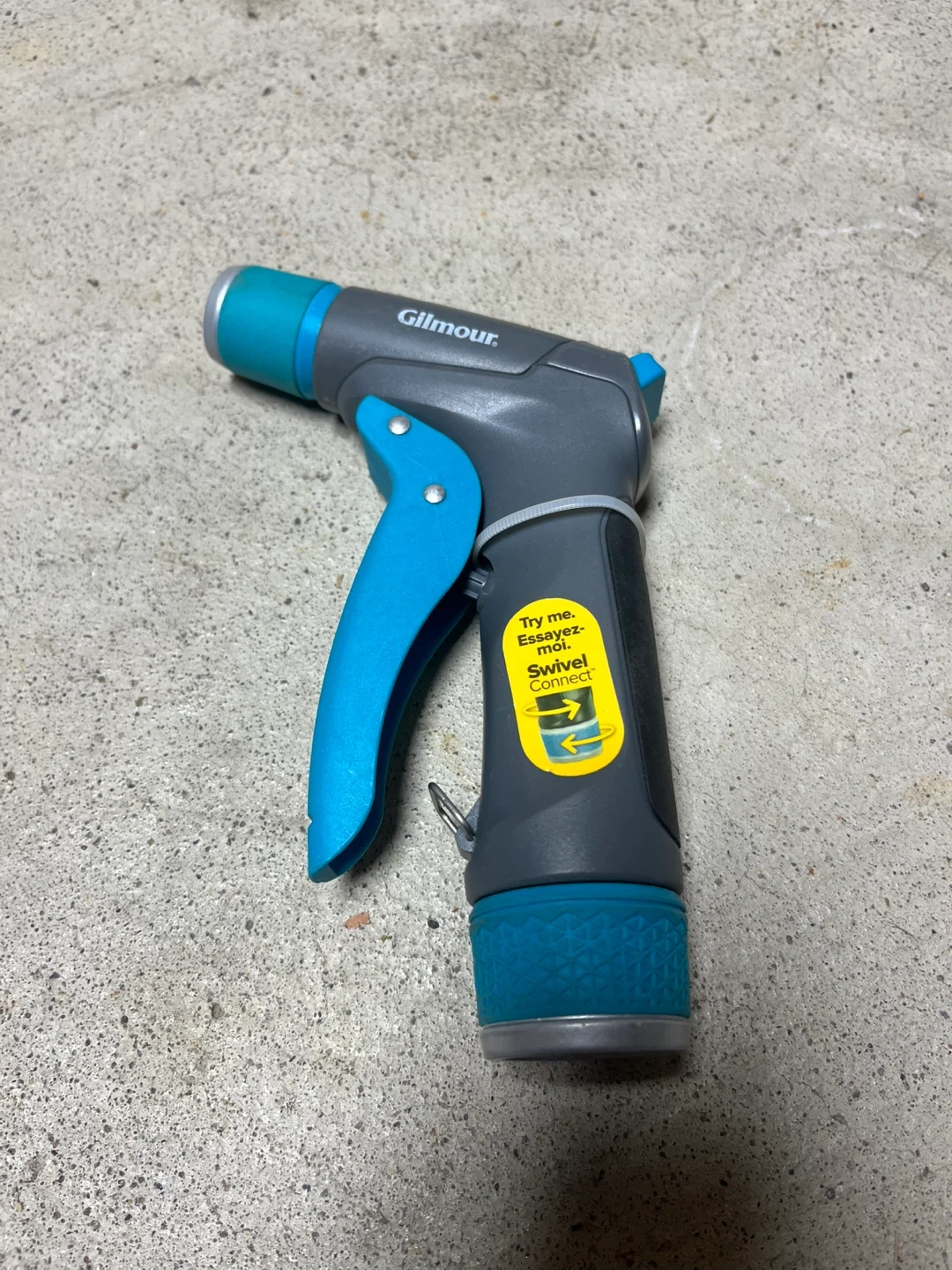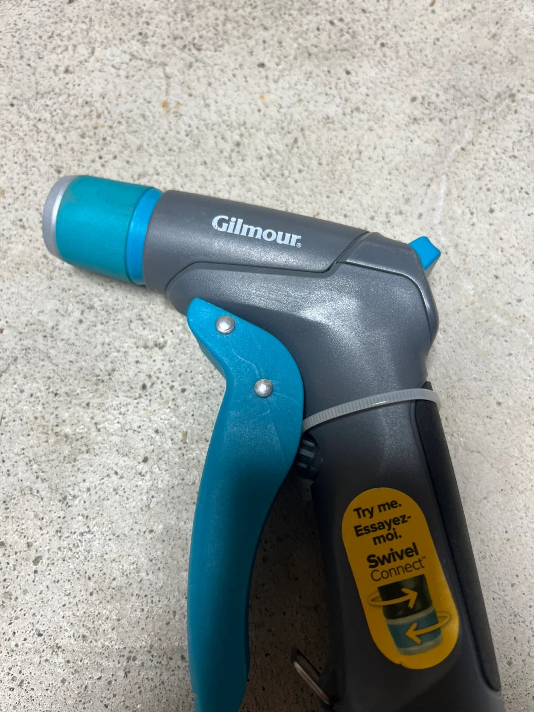10Selling a Gilmour watering nozzle with Swivel Connect. It's in great shape and ready to help with your gardening needs! The swivel connect feature makes it super easy to use