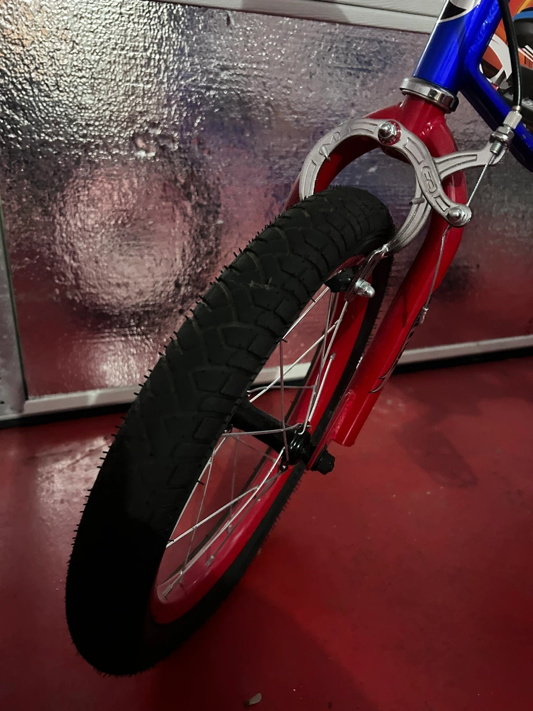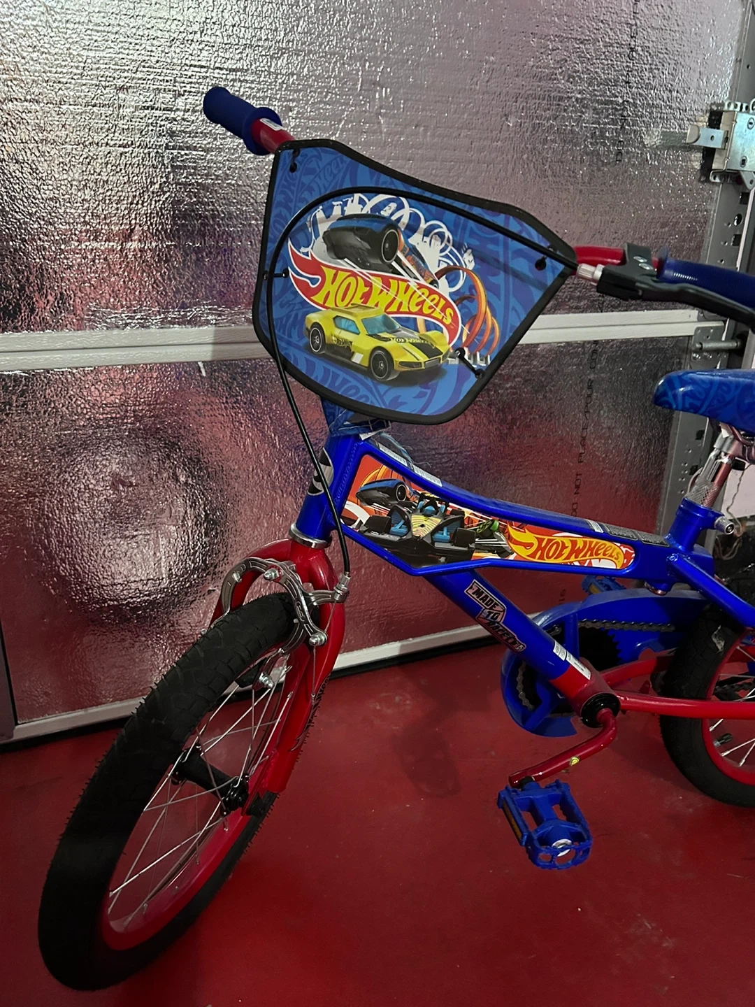 This Hot Wheels bike is blue and red. It comes with training wheels. This would be great for a young rider starting out!
