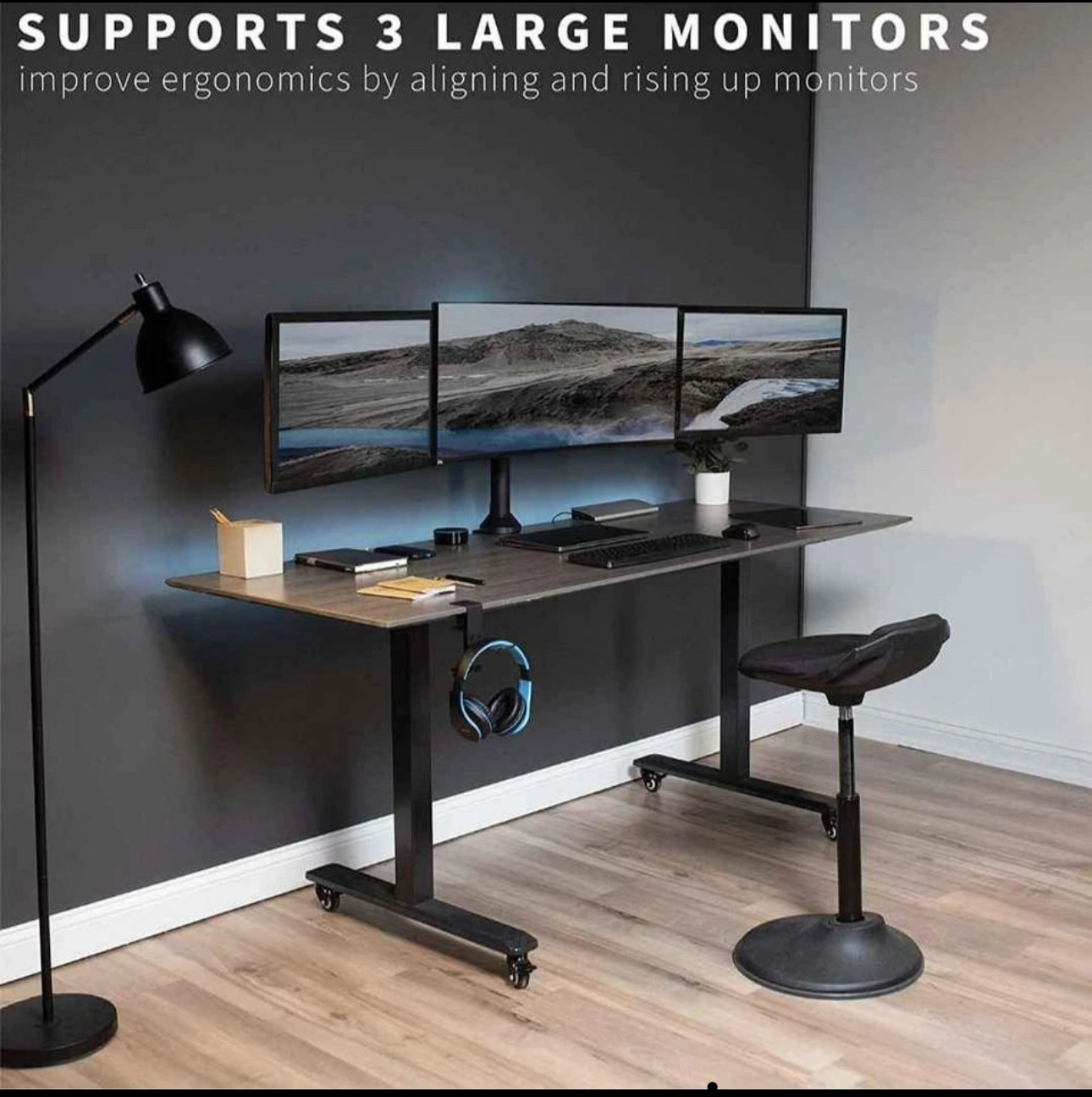 Fits 23" To 32" Screens - This mount holds 3 monitors ranging from 23” to 32” in size with VESA 75x75mm and 100x100mm backside mounting holes. All steel construction supports 10kg per screen (30kg total)