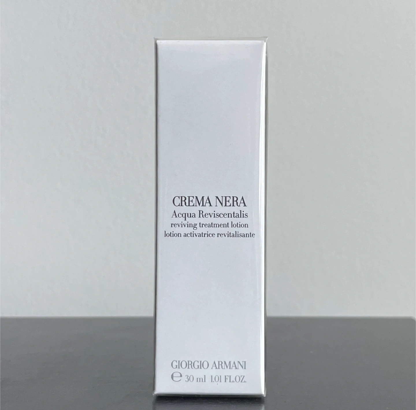 Selling a Giorgio Armani Crema Nera Acqua Reviscentalis reviving treatment lotion. It's a 30ml bottle, perfect for trying out this luxurious skincare product!