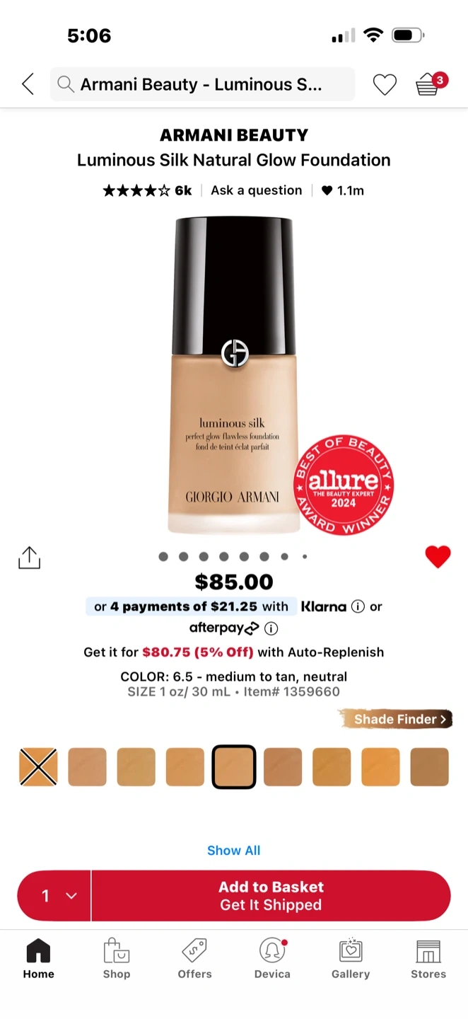 Selling a Giorgio Armani Luminous Silk foundation in shade 6.5! It's a perfect glow flawless foundation. The size is 30 ml / 1 fl oz Selling due to wrong colour for me.