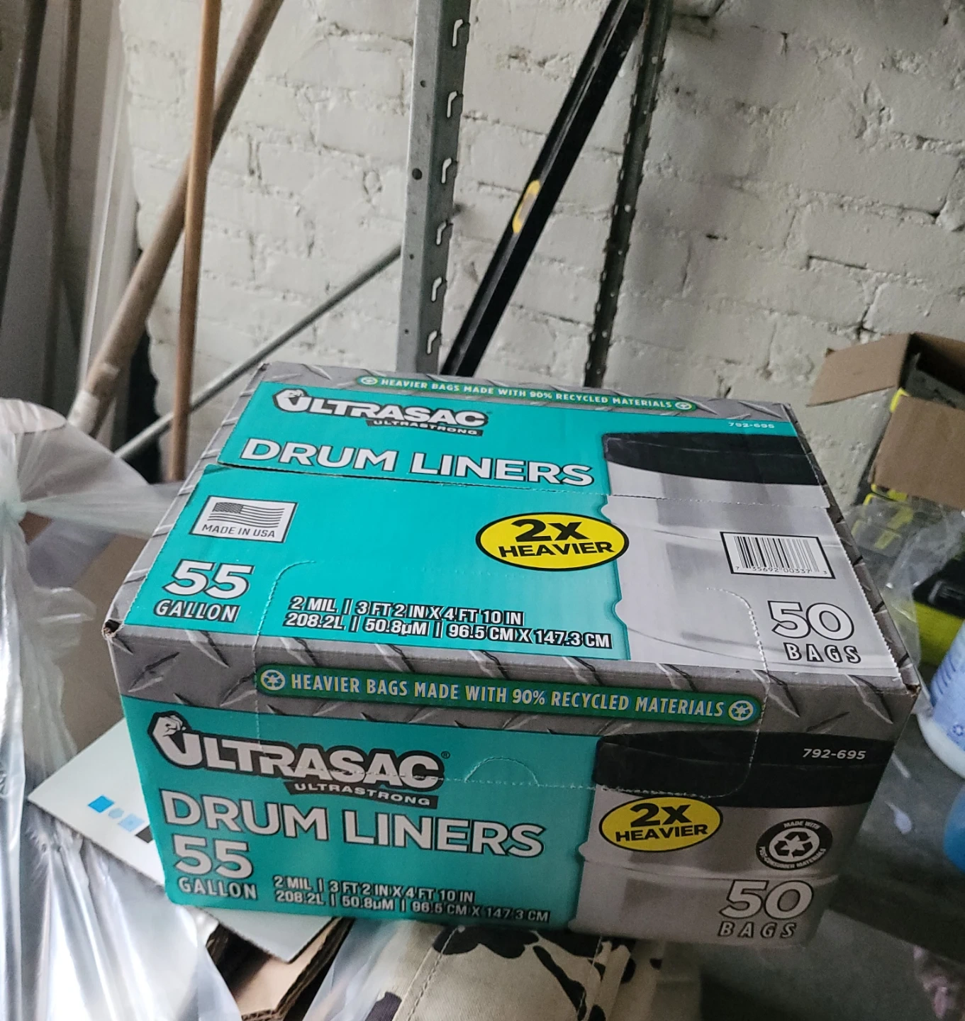 ULTRASAC drum liners are 2x heavier and made with 90% recycled materials. Each bag measures 3 ft 2 in x 4 ft 10 in. The box contains 50 bags.