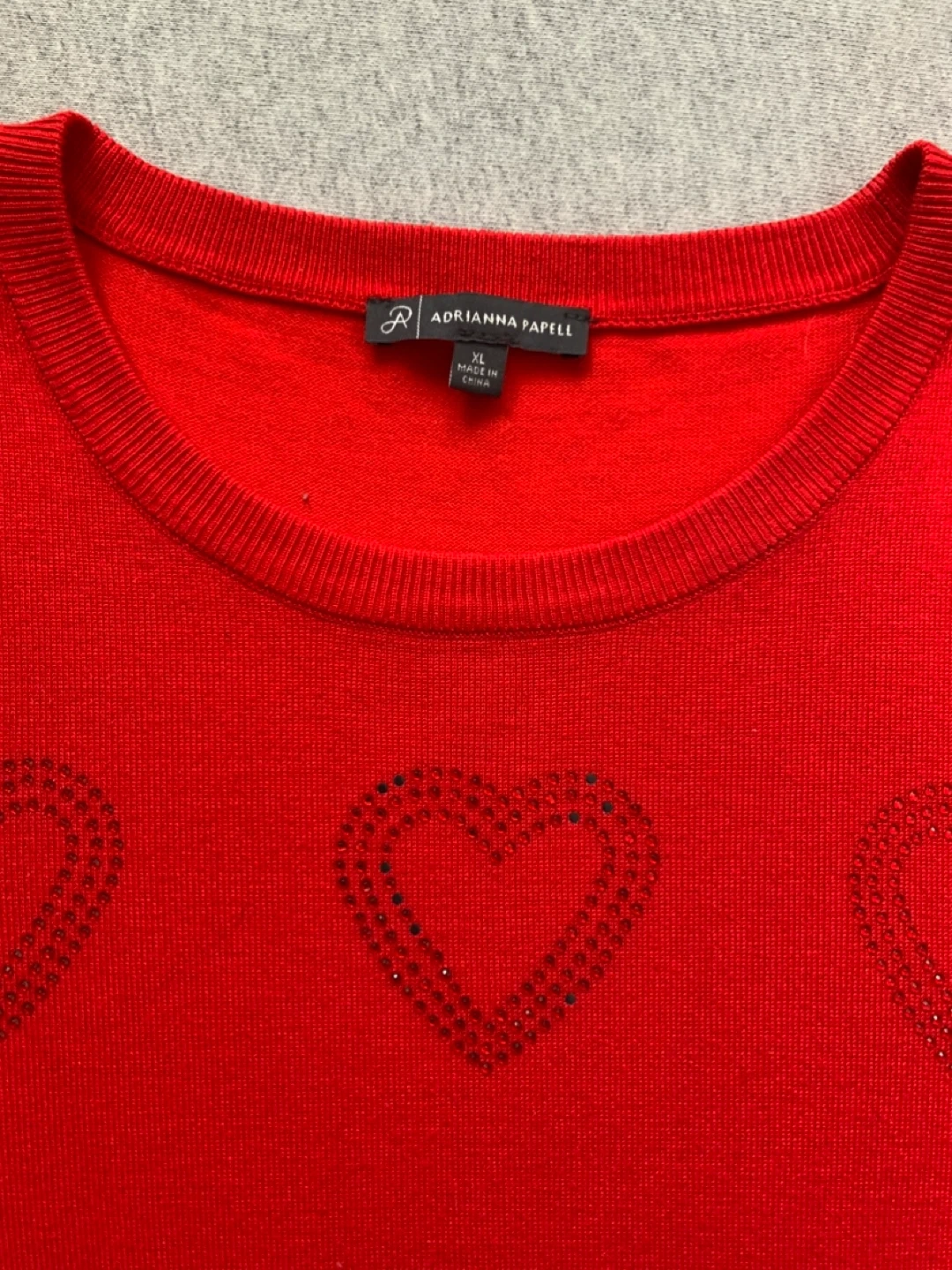 Adrianna Papell Red Heart Embellished Sweater XL
