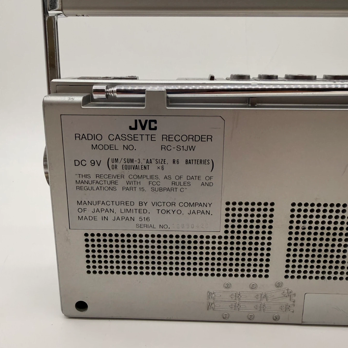 Model RC-S1JW, made in Japan. Both the radio and cassette player work well.