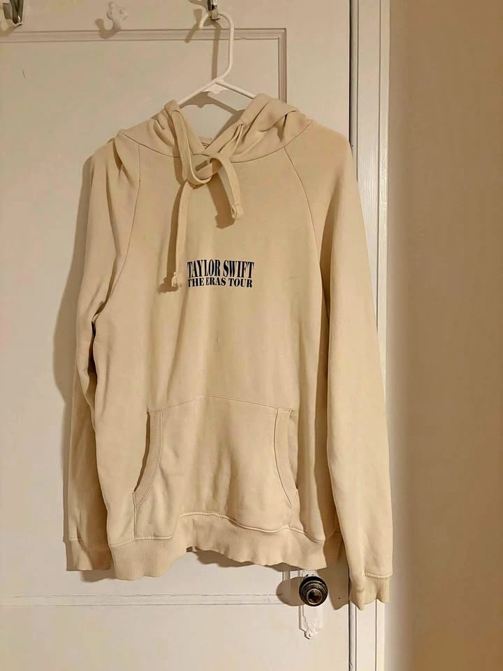 Official Taylor Swift merchandise. Size small beige eras tour hoodie. Black and white Tortured Poets version on the back. Bought at the Eras Tour in Toronto. Pick up near Yonge and Lawrence.