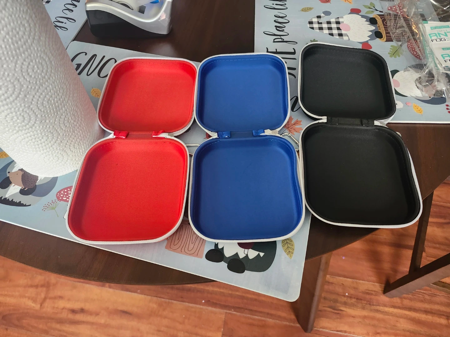 Set of 3 Square Zippered Cases - Red, Blue, Black