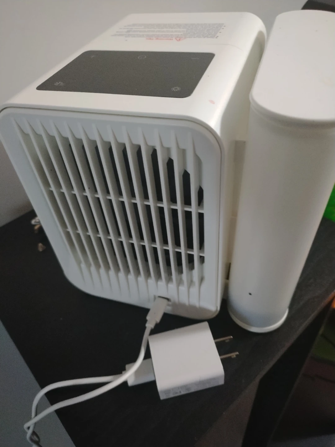Cool Chill personal air cooler in white. This portable unit is designed to provide personal cooling. Includes USB charging cable and plug.