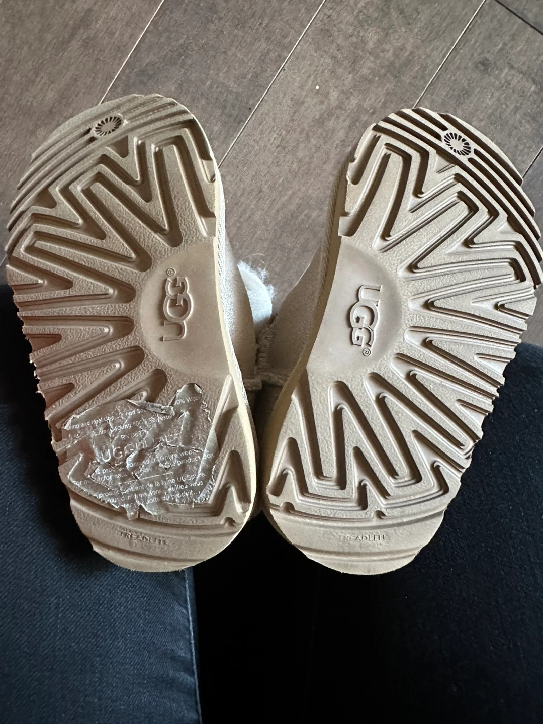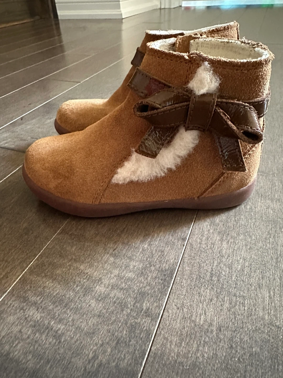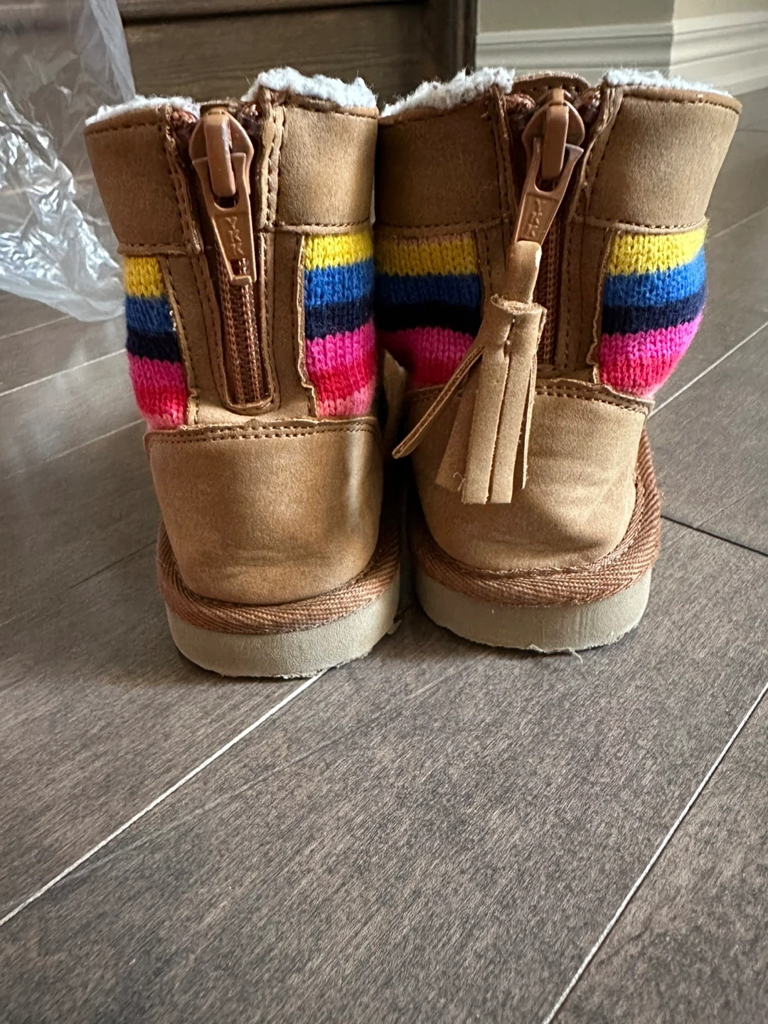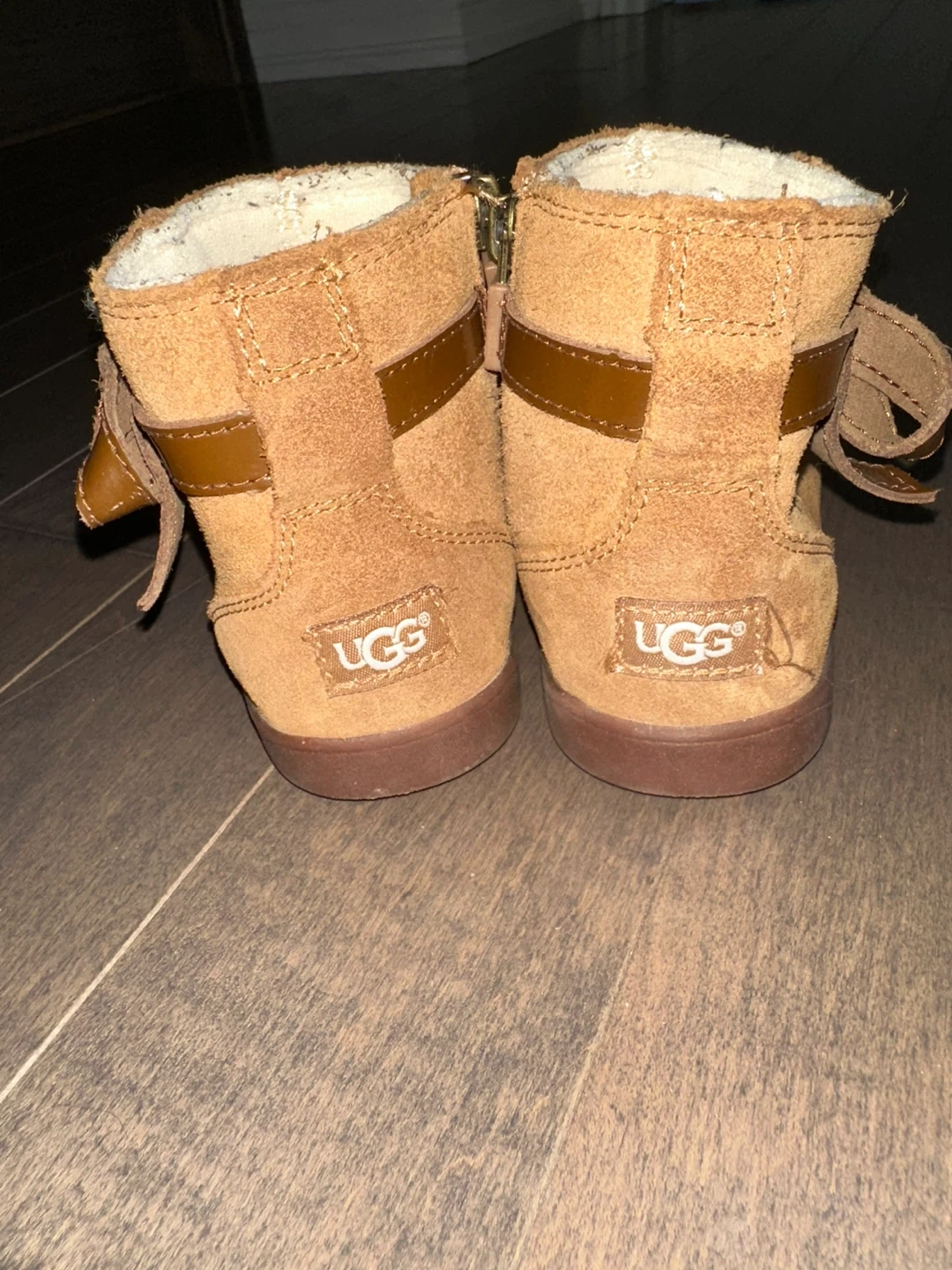 70Adorable UGG boots for kids. Soft and cozy with charming bow accents. Perfect for little feet. Pink ones are Zara, and multicolour is from gap, all size 9