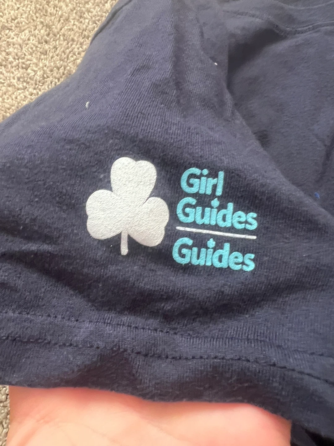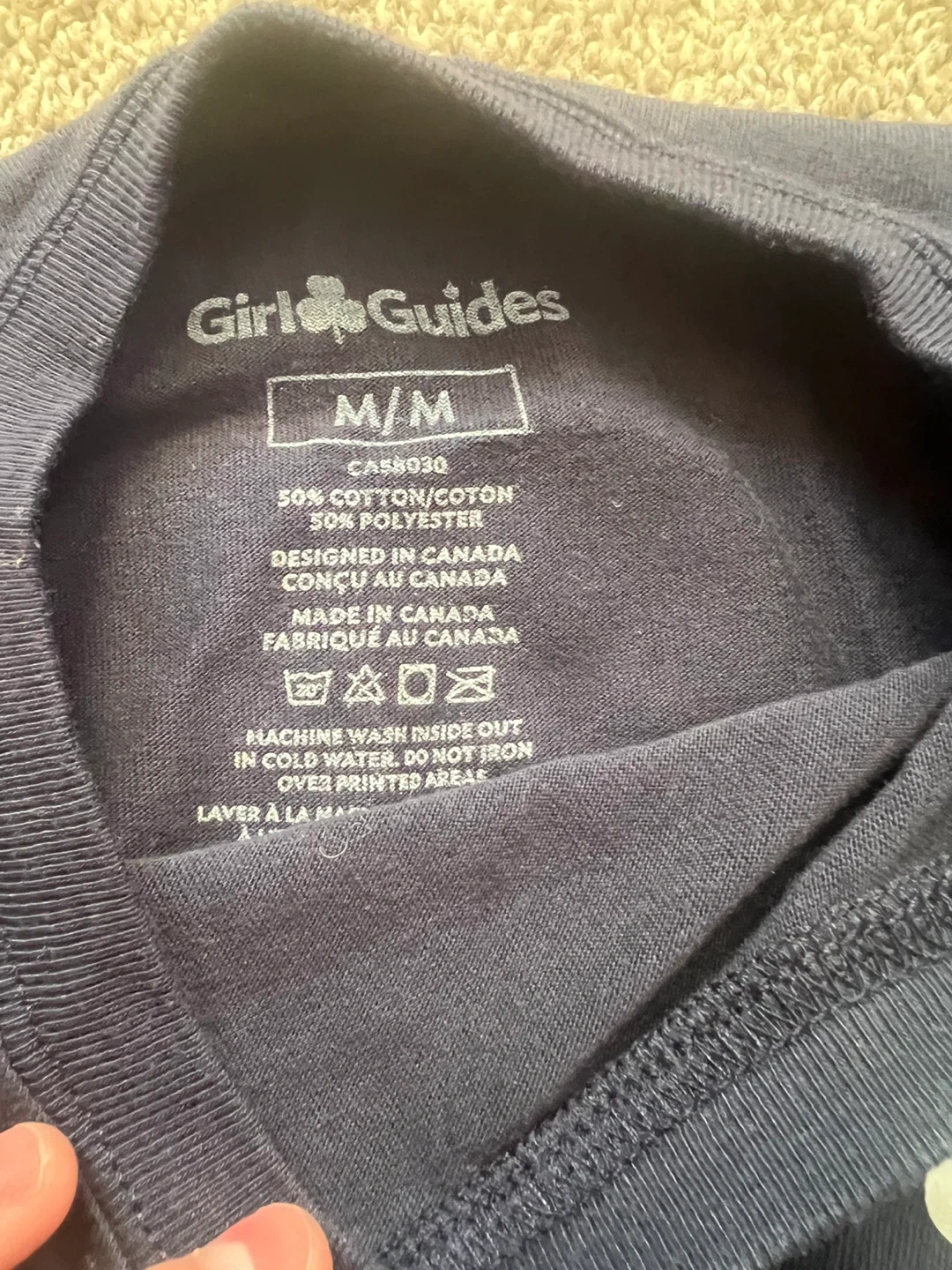 17Girl Guides T-shirt in size medium. The shirt is made of 50% cotton and 50% polyester. Designed and made in Canada. Machine wash inside out in cold water, do not iron over printed areas