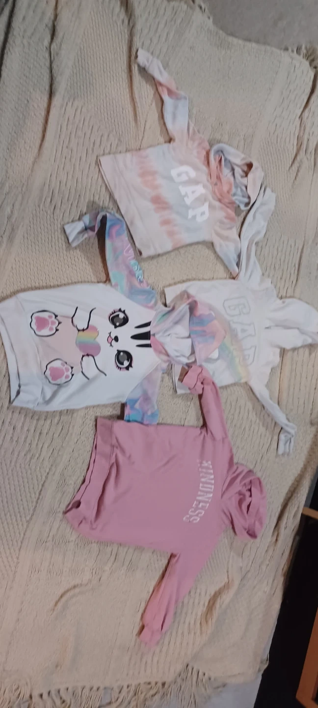 70Selling a bundle of kids' hoodies! There's a Gap hoodie with a tie-dye pattern, a white Gap hoodie, and a pink hoodie with 'Kindness' written on it. Great for layering or everyday wear $20 for all 4.. sized Med 8