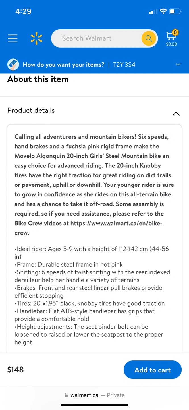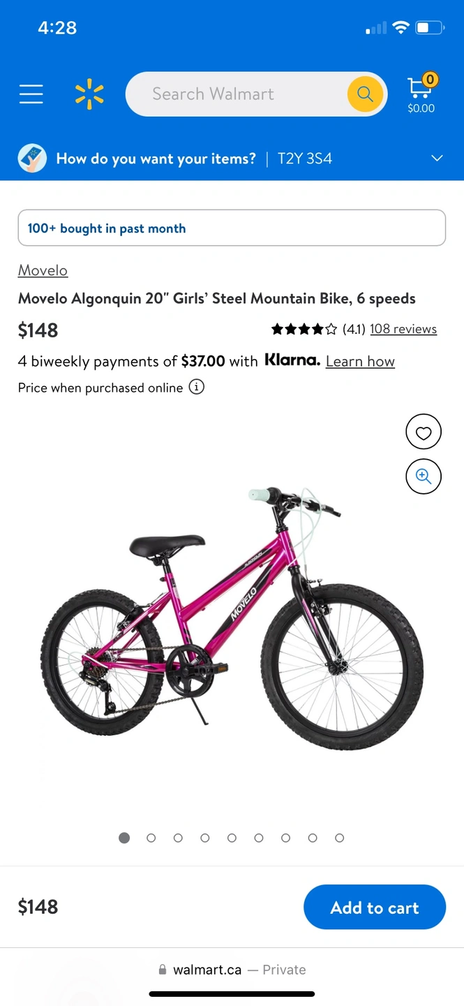 Used very few times, bought at Walmart 3 months ago but daughter started using a bigger bike last week. This bike has an upgraded 6 speed trigger shifter that is way much easier to use by the little ones. It’s in very good shape, stored indoors. $85 cash - pick up in West Downtown Calgary.
