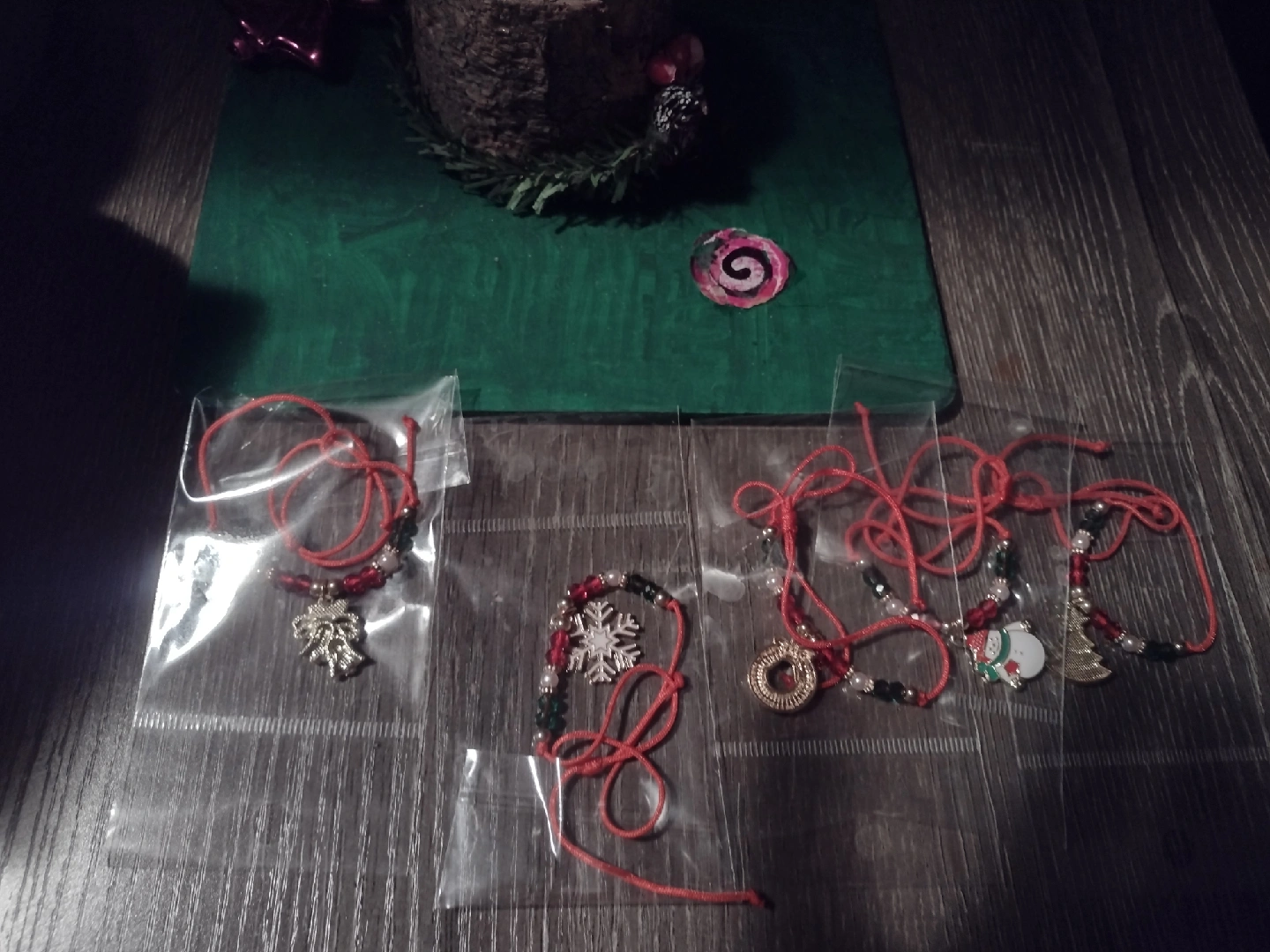 41Girls Christmas themed Bracelets. These bracelets are home made with Red Rope, charms and beads and made from love. These Cute little ones are Great to add to any Stocking or would make a Great Gift in itself.