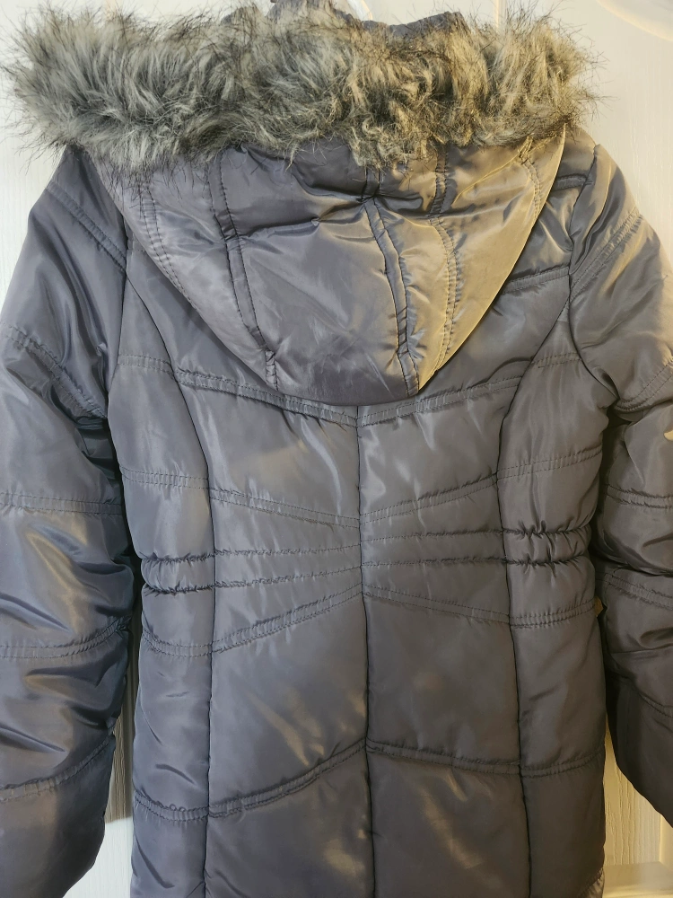 22Grey winter puffer jacket. Size large girls (12/14). Features a faux fur-trimmed hood and zipper closure. Good condition. Located north , can meet/ deliver Northgate , Skyview, Londonderry