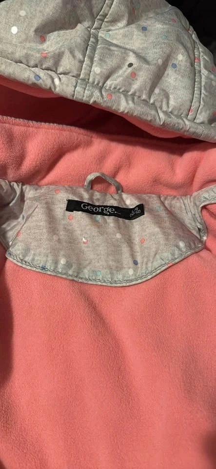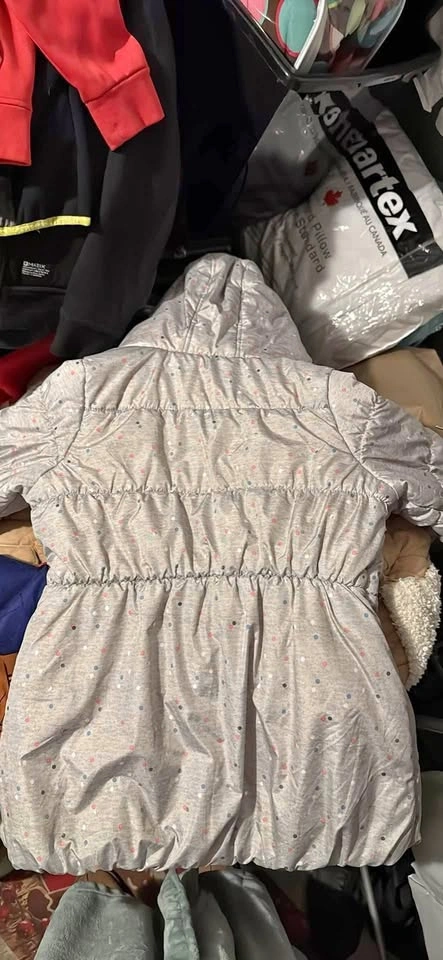 10Polkadot hooded coat with a bit of silver glitter dots, size 10-12, great shape, ready for a new little girl. Pick up near 200 Street and 72nd Ave. in Langley.