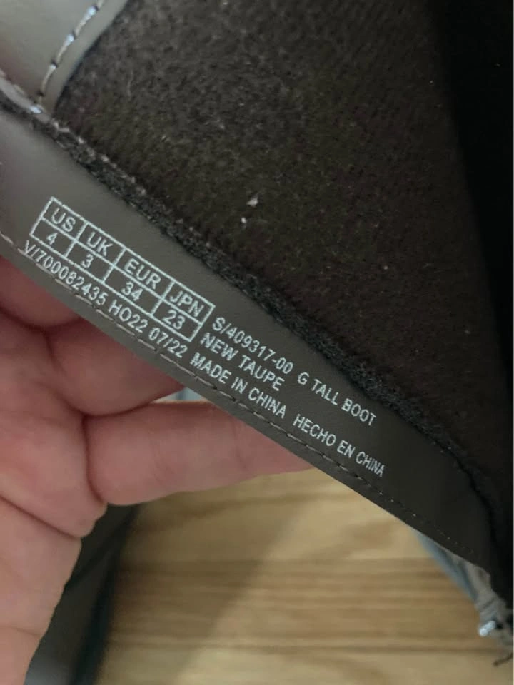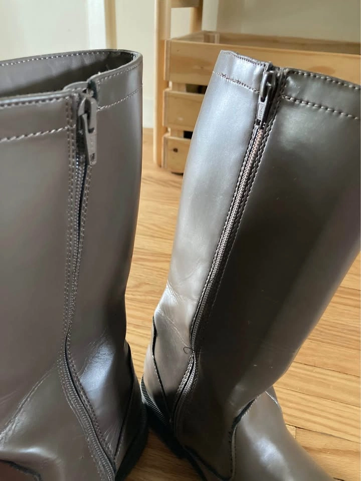 133In good used condition. Only wore on dressy casual occasions. These boots were so cute with all sorts of dress styles and kept my daughters legs warmer when running out in winter These are taupe riding style boots from the GAP. They reach just below the knee and are wide leg style. The inside has a soft lining and would be comfortable even just wearing socks. They do up with a zipper on the insides of each boot. Brand Gap Size 4 EASY PORCH PICKUP AVAILABLE Around Liverpool & Bayly area.