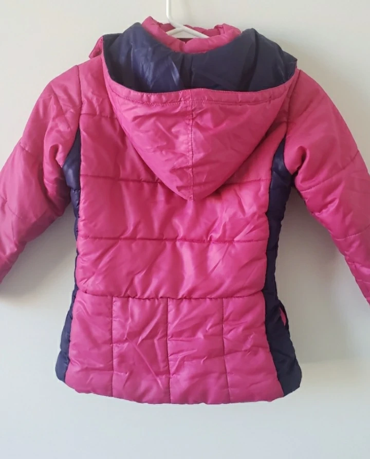 161Size: US 6X Girls Puma puffer jacket. Pink and navy blue colour block design. Zipper closure. Attached hood. Excellent condition
