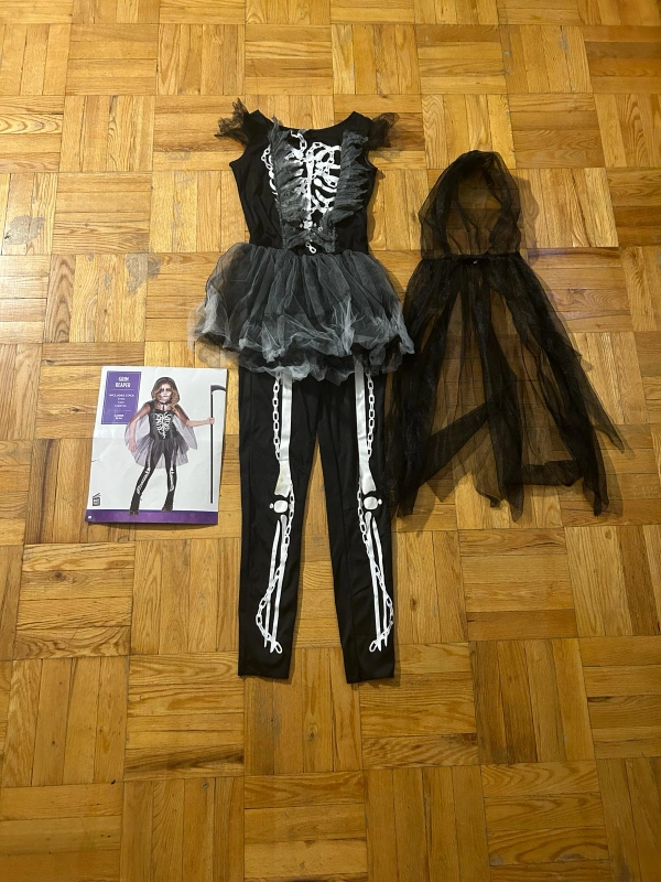 10Girl's Reaper Halloween costume, includes dress, leggings, and cape!