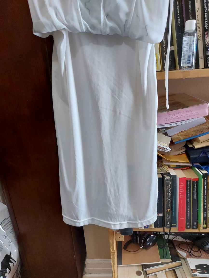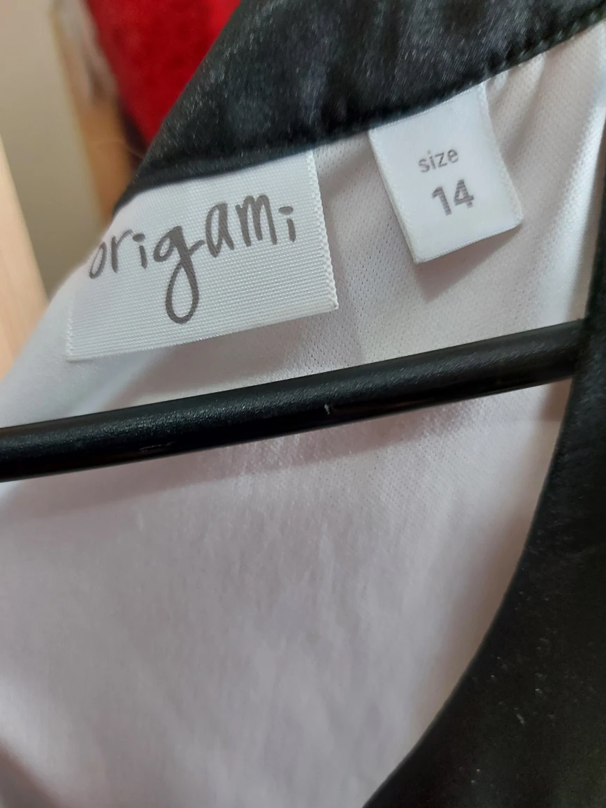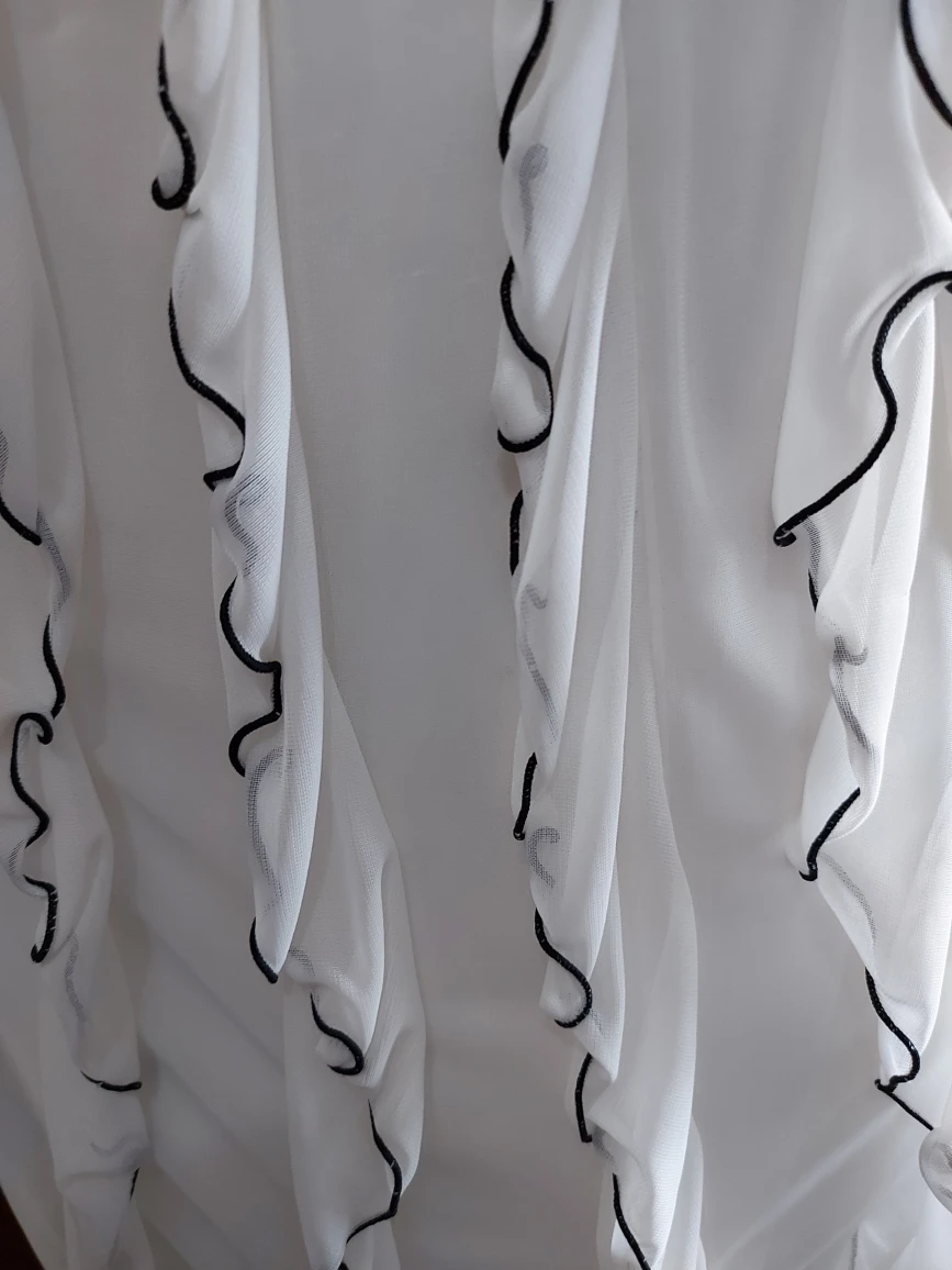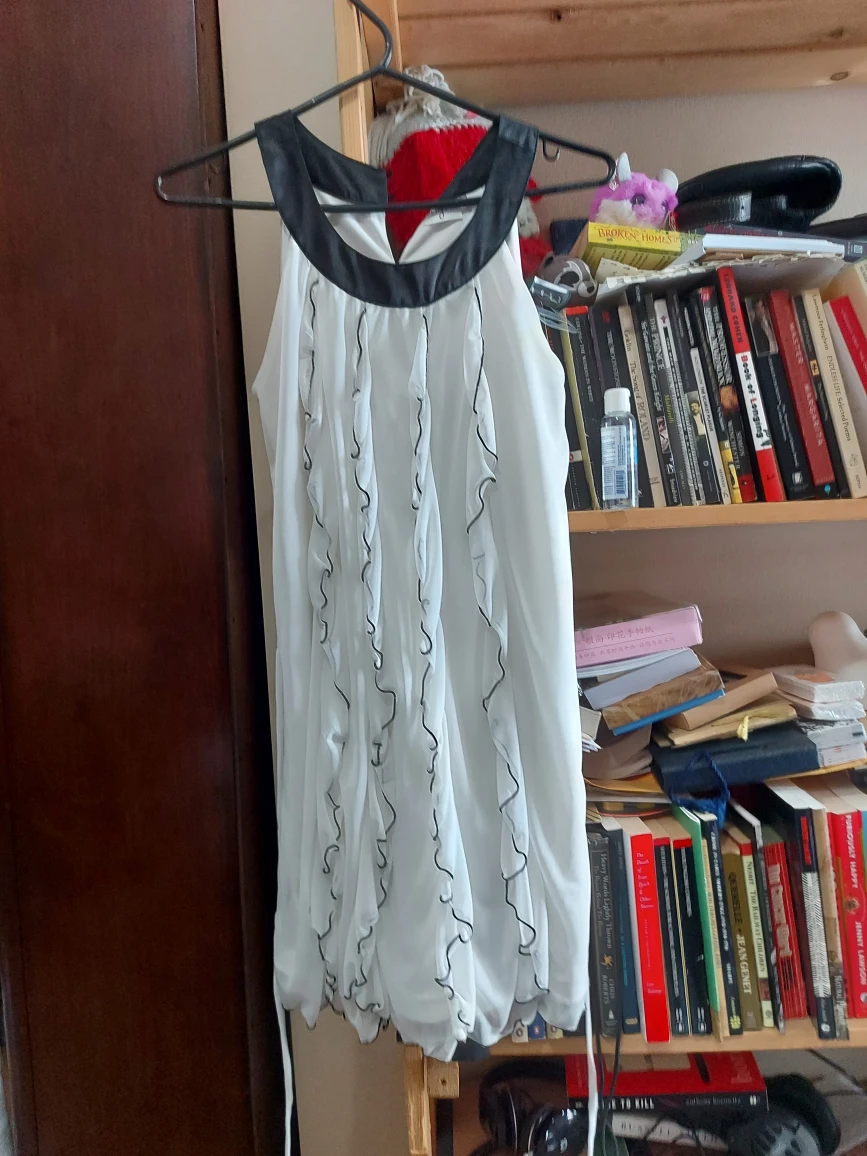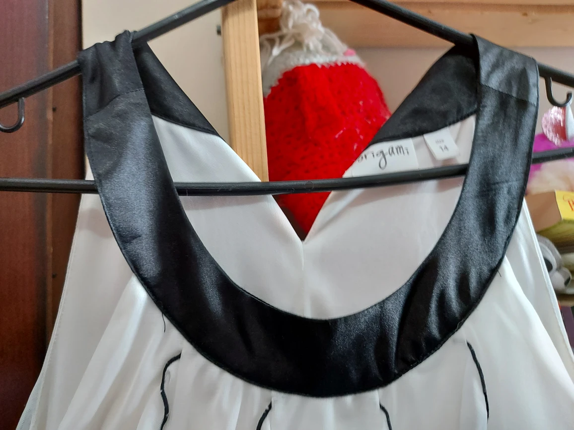 1000+Origami. Girl's size 14; fits women's XS. Stunning knee-length ruffled summer cocktail or formal. An LBD in white! Worn once, maybe twice, VERY gently by a girl who hated dresses and took it off (and left it to be dry cleaned!) as soon as she could. π