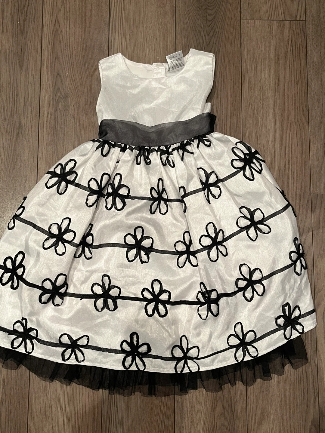 31A lovely dress for a little girl! This white dress features a black floral pattern and a black ribbon around the waist. It's size 5 and made with lining of polyester. Perfect for parties or special occasions! Pick up at Brow of the Hill near 10th and Royal, New Westminster. Check out my other listings!
