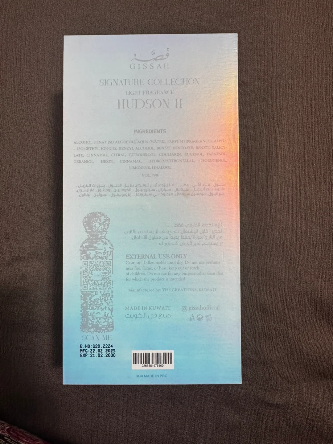 Selling a Gissah Hudson II Signature Collection Light Fragrance. It comes in its original box. The size is 200ml / 6.7 fl.oz. The manufacturing date is 2023 February 02 and it expires on 2030 February 21