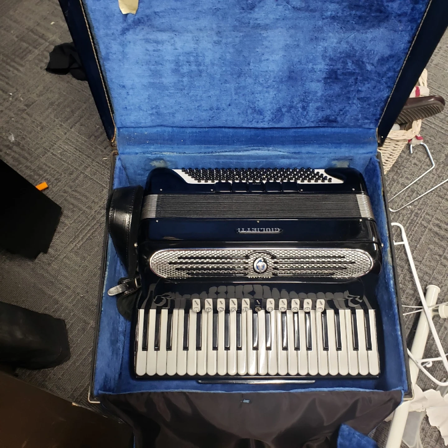 Selling a Giulietti accordion. It comes with its original case lined with blue velvet. It's in good condition and ready for a new home!