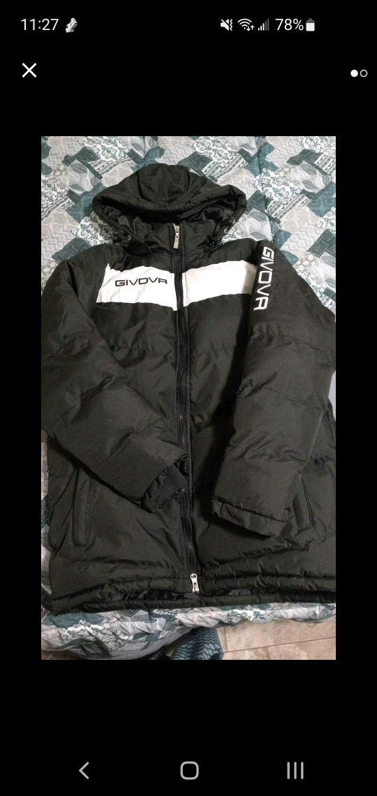 10Men's Givova puffer jacket. Black, white accents. Full zip closure. Hooded. Warm winter jacket.Can Deliver