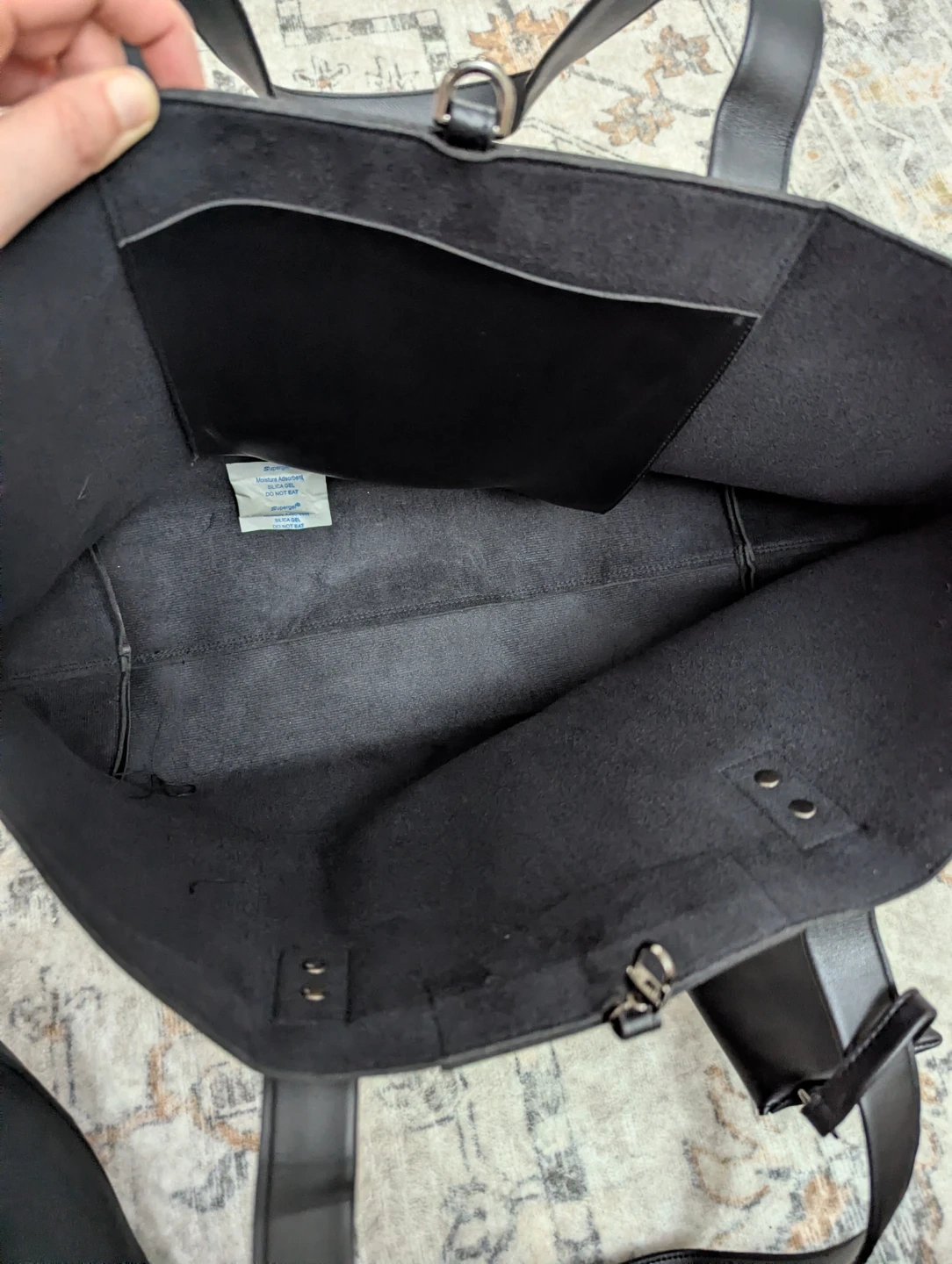 NEVER USED! This black Guess tote bag comes with a matching coin pouch. It's a stylish and practical accessory for everyday use. The tote features a spacious interior with a small pocket. Made from faux leather.