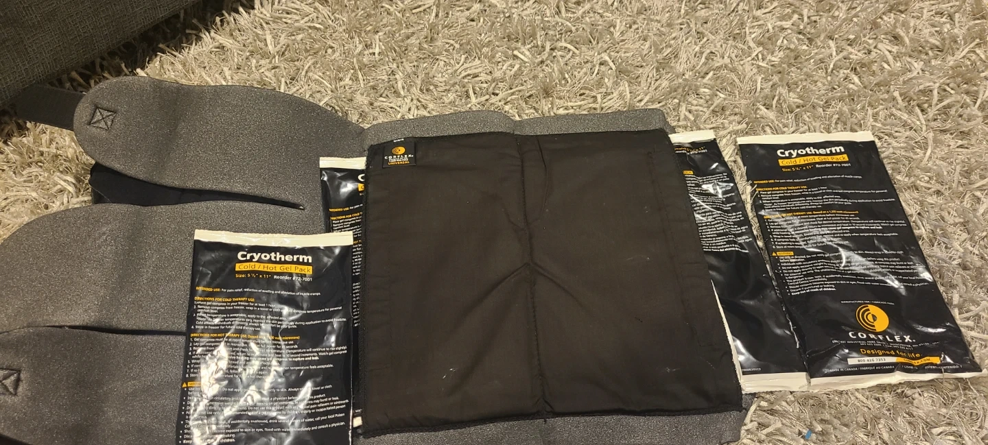*Also includes ankle and knee brace which have the pockets to insert hot/cold gel packs.