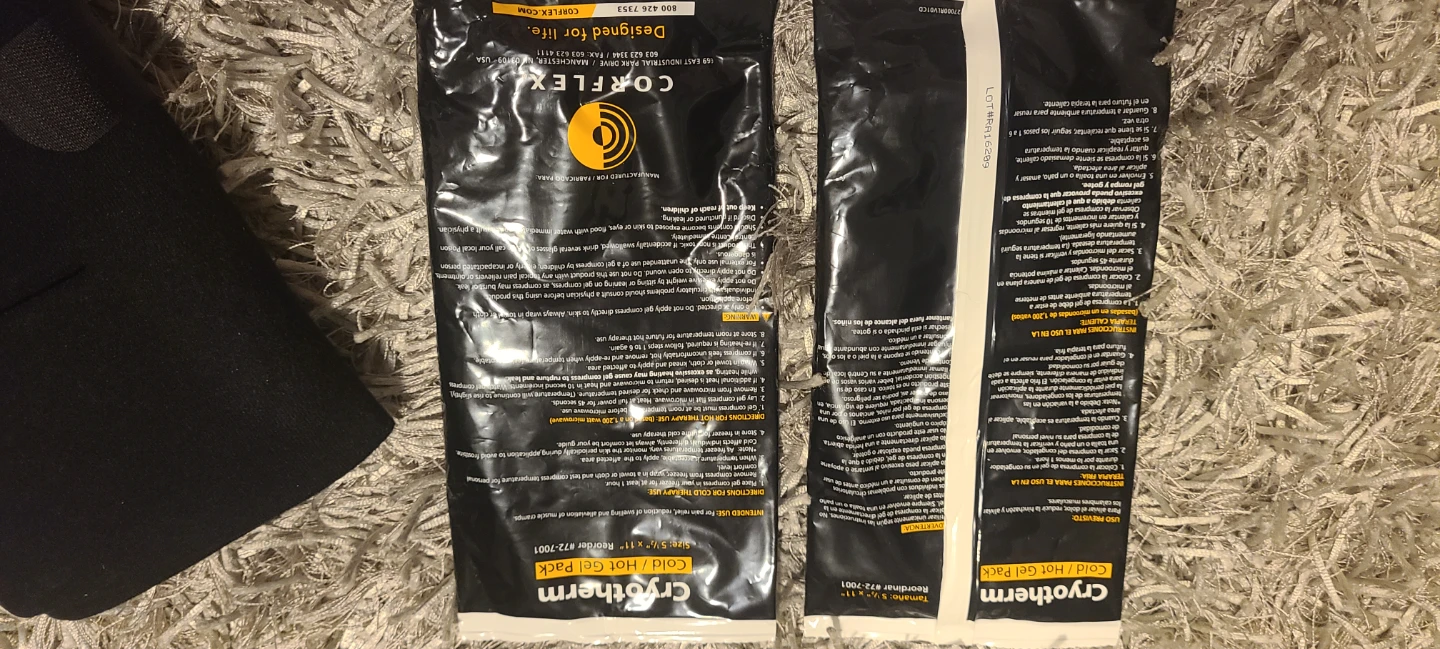 4 pack of white cold/hot gel packs. 4 packs of black cold/hot gel packs.
