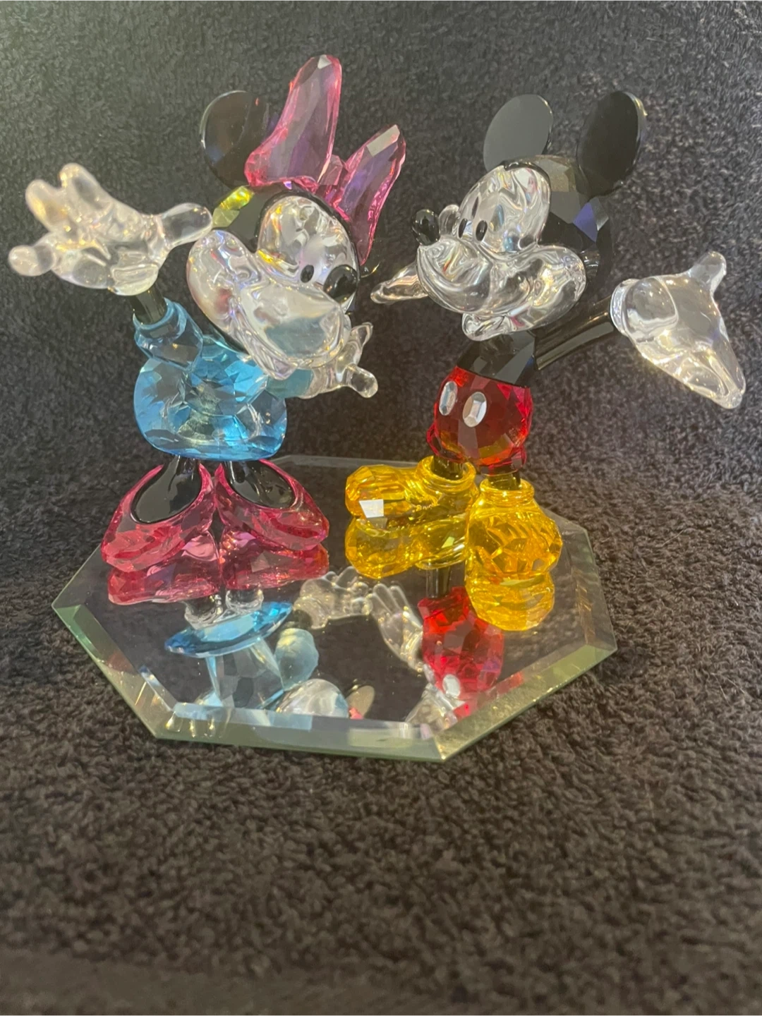 Set of two pre owned Swarovski crystal figurines featuring Mickey and Minnie Mouse. These decorative pieces showcase intricate details and colourful accents. They're a charming addition for any Disney fan's collection. Dave. 647 825-4034. Free delivery in and around gta. 🇨🇦