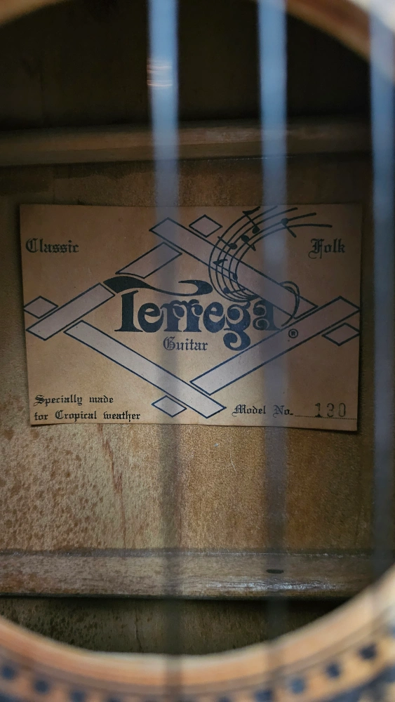 Selling a Terrega classic folk guitar, model number 120. It's specially made for tropical weather. This guitar has a beautiful sound and is perfect for anyone looking to learn or play!