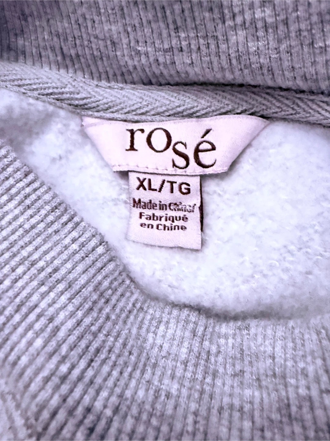 This Rosé grey sweatshirt and shorts set is made of 80% cotton and 20% polyester. The set is size XL/TG. It's perfect for lounging or casual wear. Machine wash in cool water.