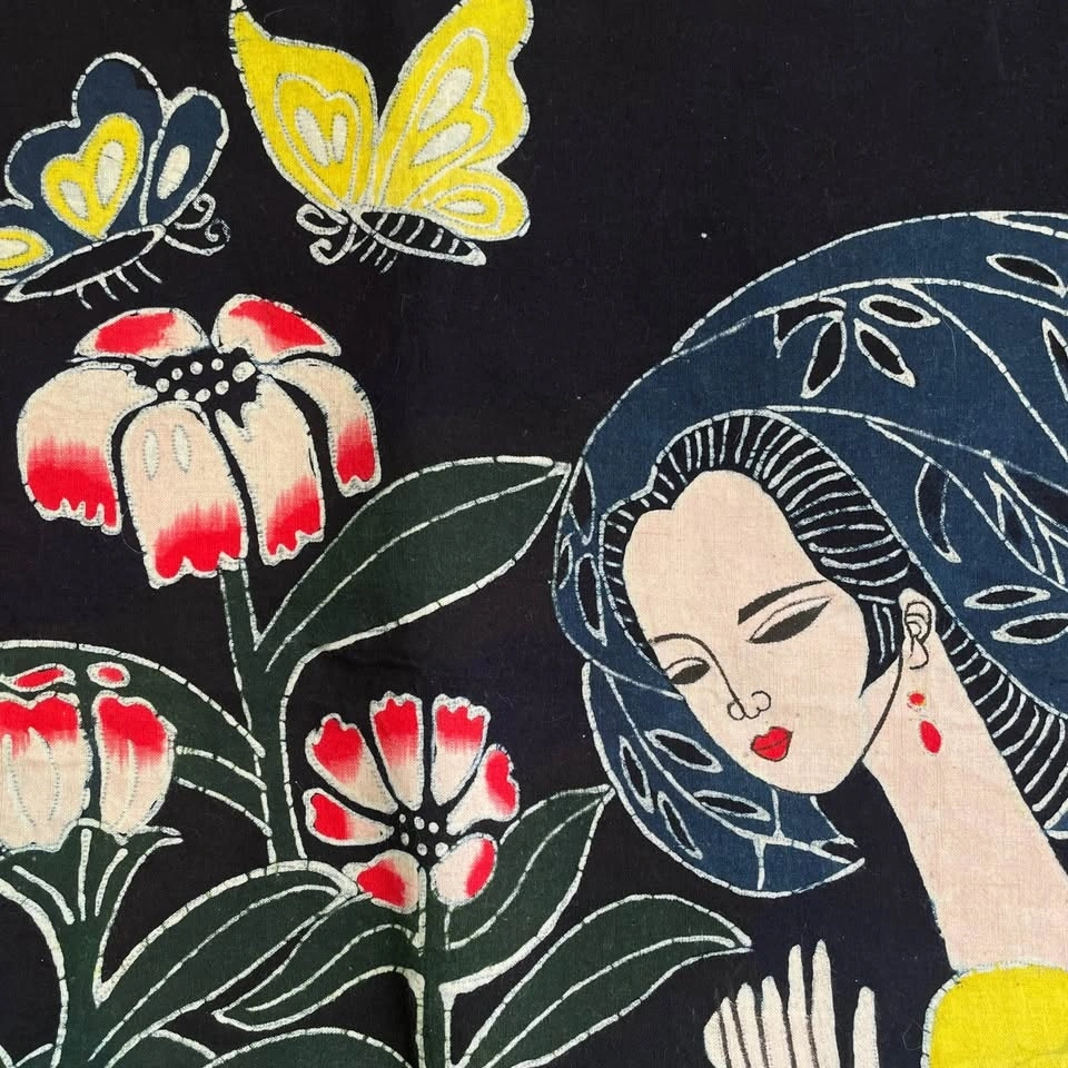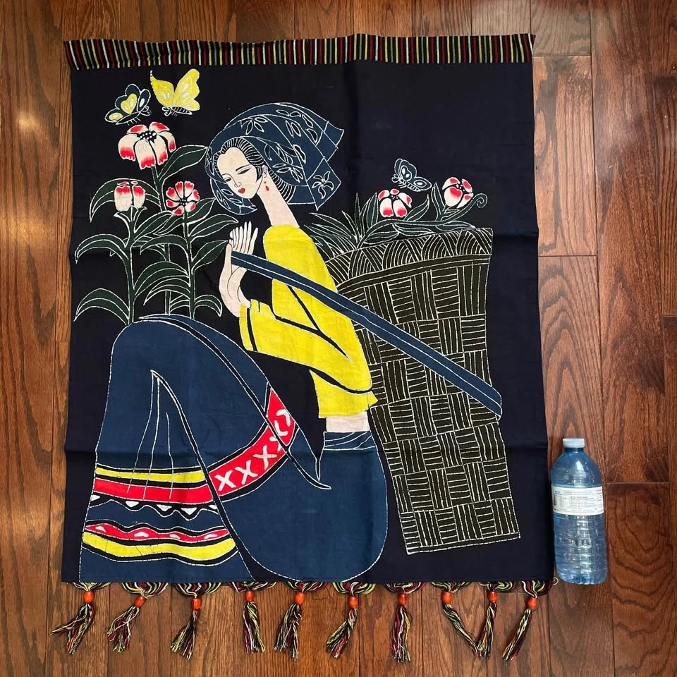 Vintage batik wall hanging inspired by traditional wax-resist dyeing techniques of Chinese ethnic minority groups.