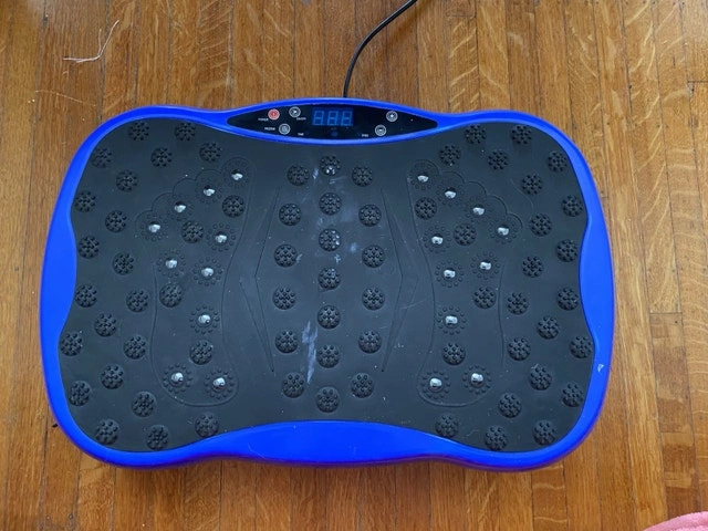Brand new vibration plate, unopened in box. Bought two last December as one was a gift. Comes with remote, cord, and two bungee cords. I am using the other one myself. Photo shows the unopened box and my own plate which is identical.