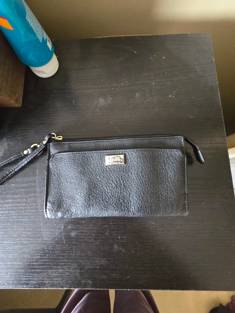 Selling a gently used Coach wristlet in black leather. It has a zippered closure and a wrist strap. Inside, there are multiple card slots and compartments to keep your essentials organized. Perfect for a night out or when you want to travel light!