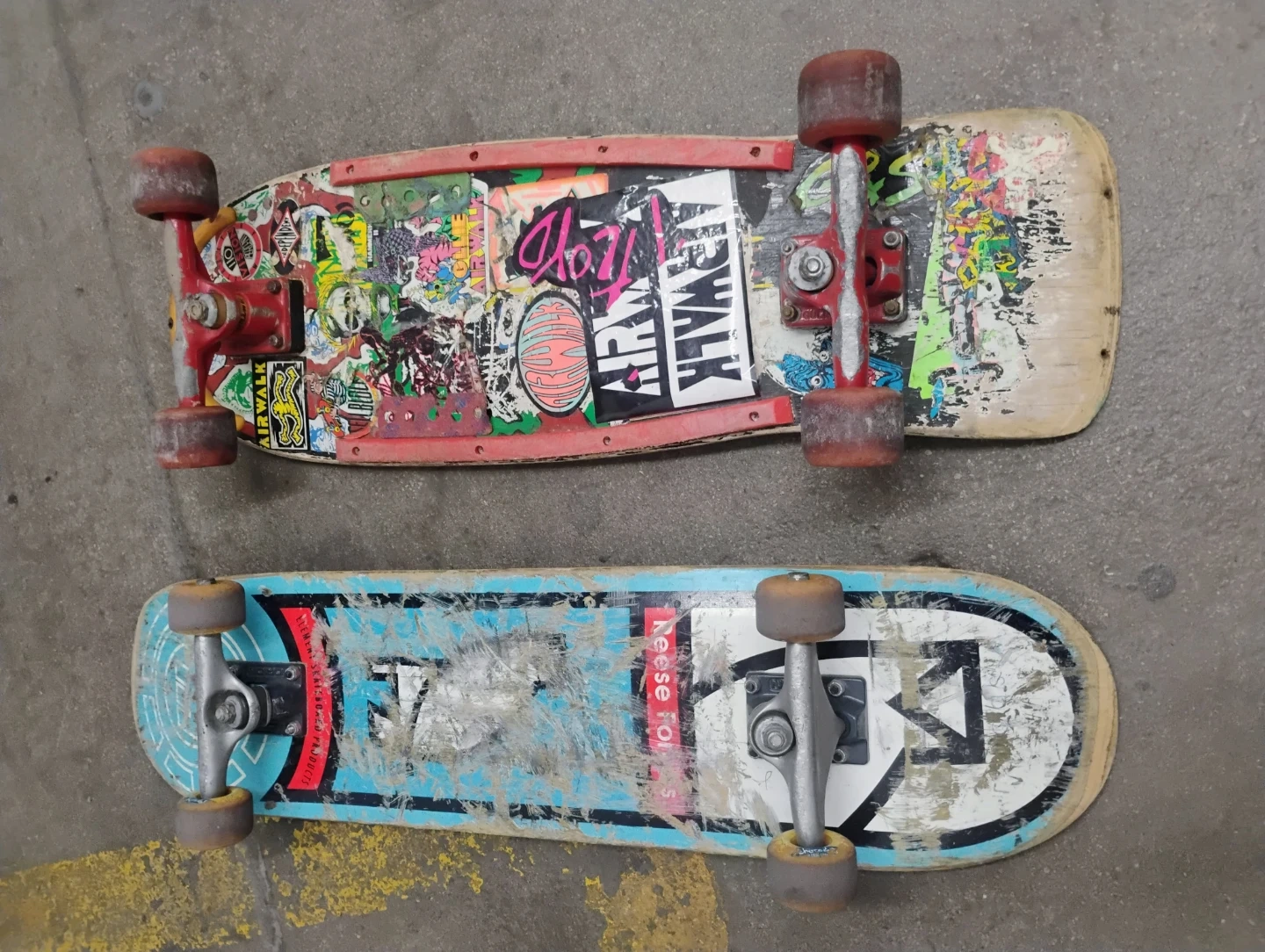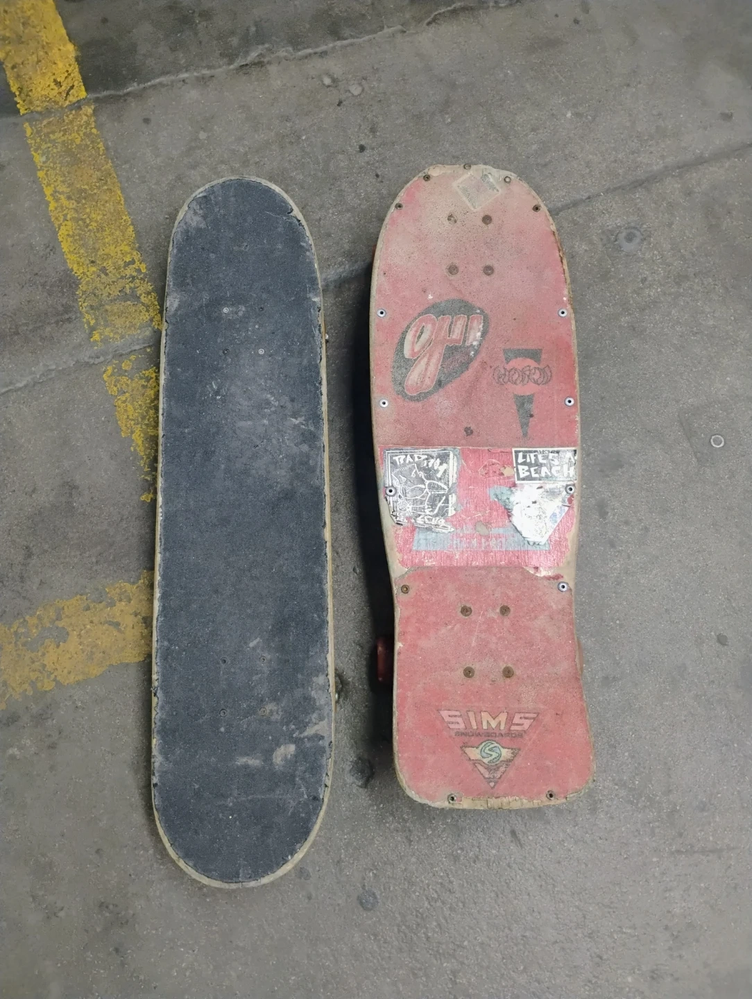 Components: vintage trucks and wheels (check if the trucks say Independent or Gullwing, that goes up the price). Includes the original red protective rails (lappers).